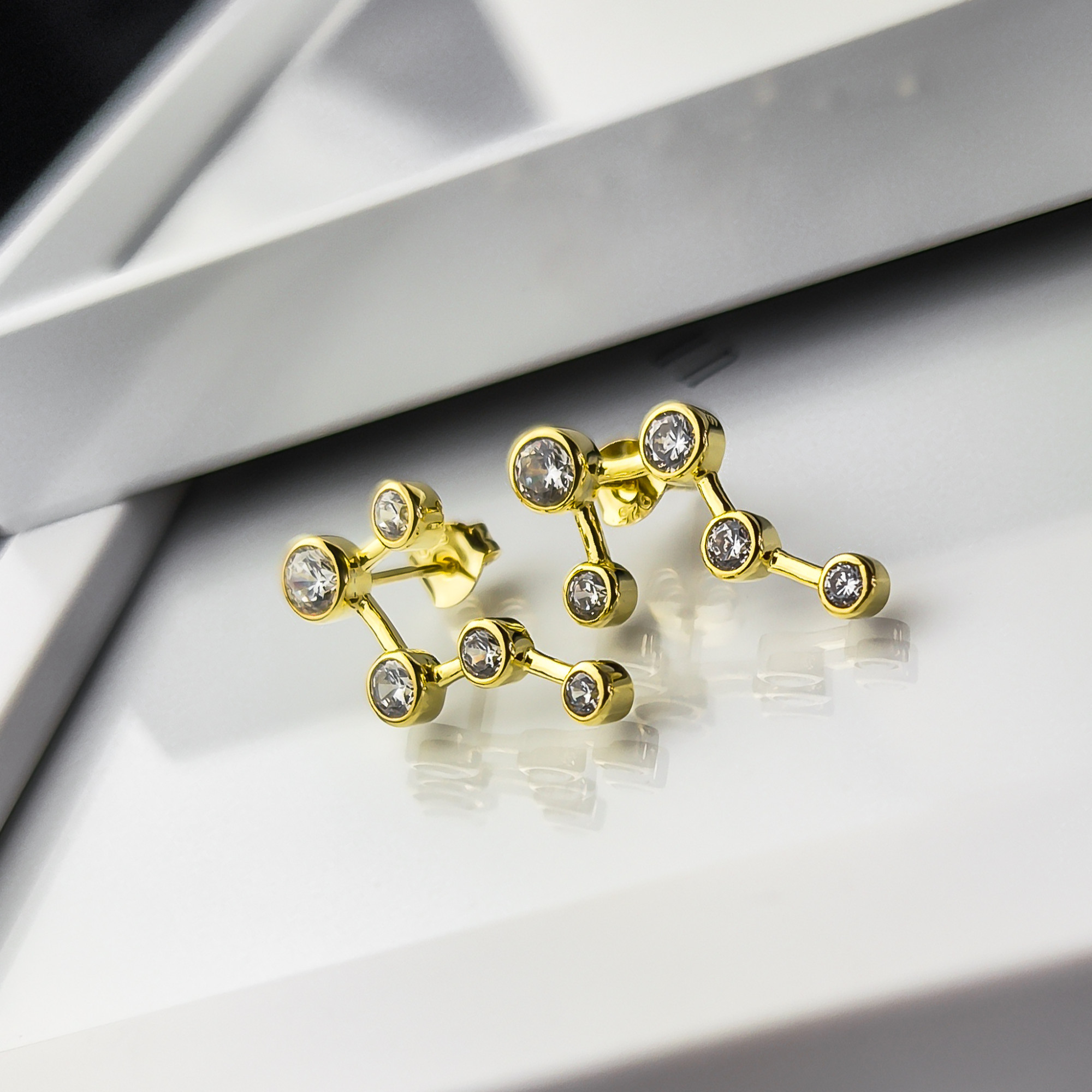 Nowoczesna forma zamknięta w srebrnych kolczykach próby 925, o niezwykle fantazyjnym kształcie i z pięknie połyskującymi cyrkoniami, nadadzą szyku stylizacji na każdy dzień. Biżuteria zapakowana w ozdobne pudełko będzie wspaniałym prezentem.