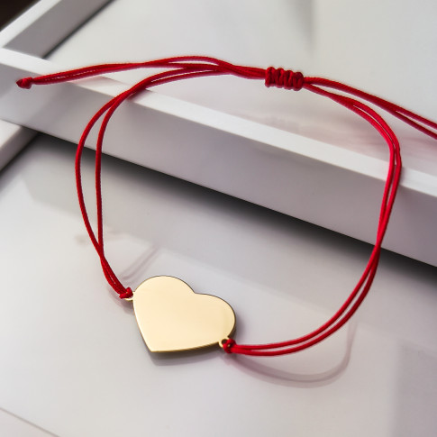 Bransoletka na czerwonym sznurku ze złotym sercem z możliwością graweru z dwóch stron - pr. 585