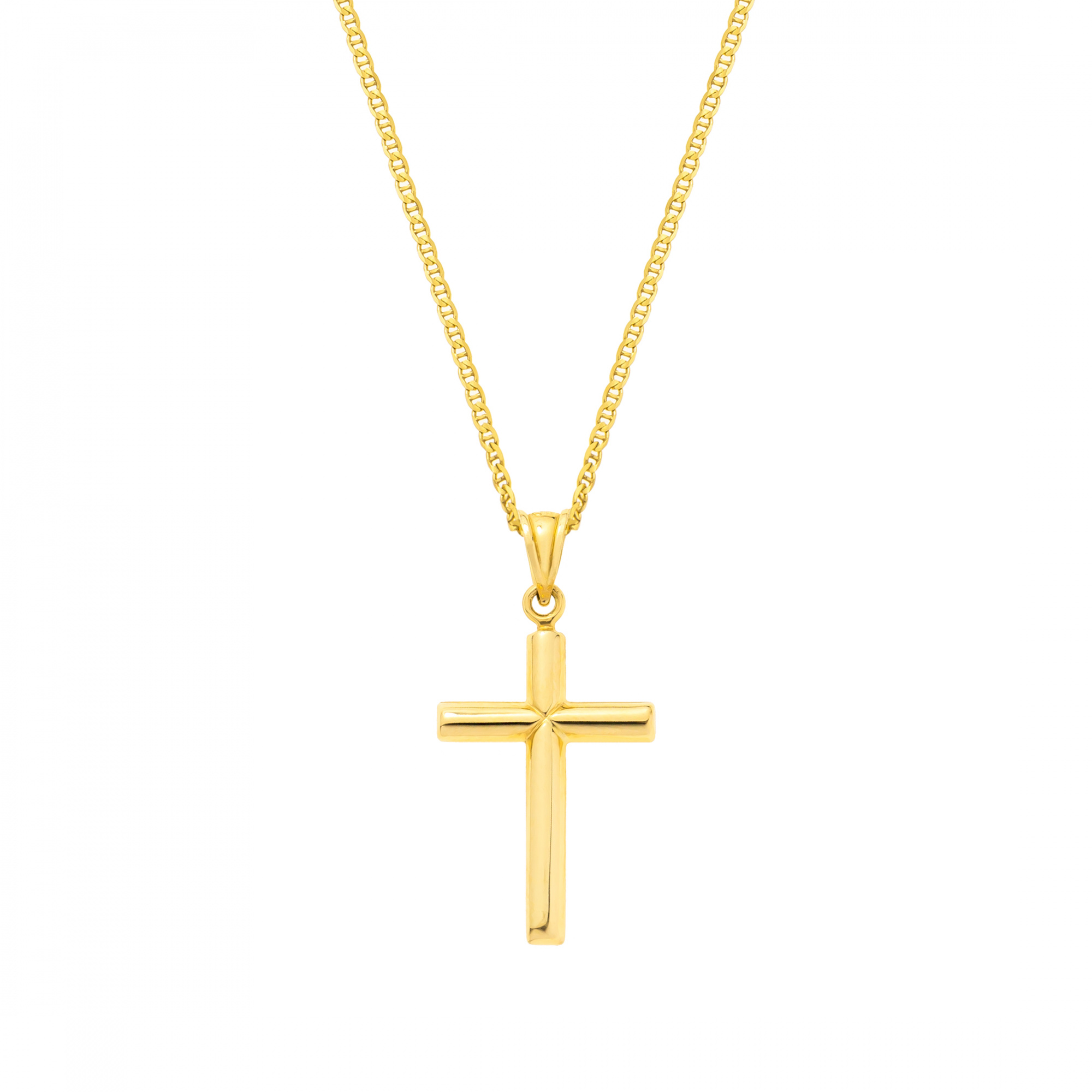 Idealny pomysł na upominek bliskiej sercu osobie. Złota zawieszka w kształcie krzyżyka przypadnie do gustu każdemu obdarowanemu. Delikatny wzór - to doskonały tradycyjny pomysł na prezent z okazji przyjęcia każdego z sakramentów i nie tylko. Do tego delikatny łańcuszek typu Marinero. Biżuteria zapakowana w ozdobne pudełeczko będzie wspaniałym prezentem. Dodatkowo mamy możliwość wykonania graweru na blaszce i umieszczeniu jej w pudełku. Skorzystaj z naszych wzorów lub stwórz własny oryginalny tekst graweru i skontaktuj sie nami: