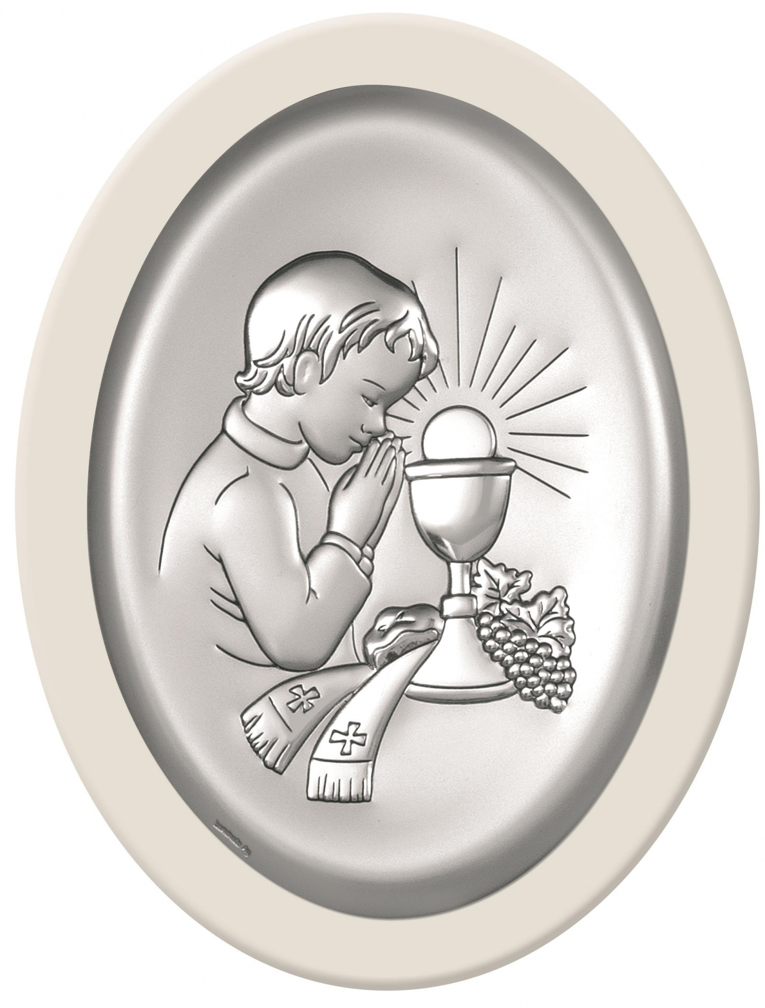 Całość została wyprodukowana we Włoszech, zgodnie tradycją obróbki metali szlachetnych. Do obrazka dołączona jest nóżka, aby móc go postawić oraz otwór do powieszenia. Jeżeli życzą sobie Państwo grawer, taką usługę również posiadamy w swojej ofercie. Obrazek z grawerem, życzeniami jak i dedykacją będzie pamiątką z okazji Chrztu, Komunii Św.