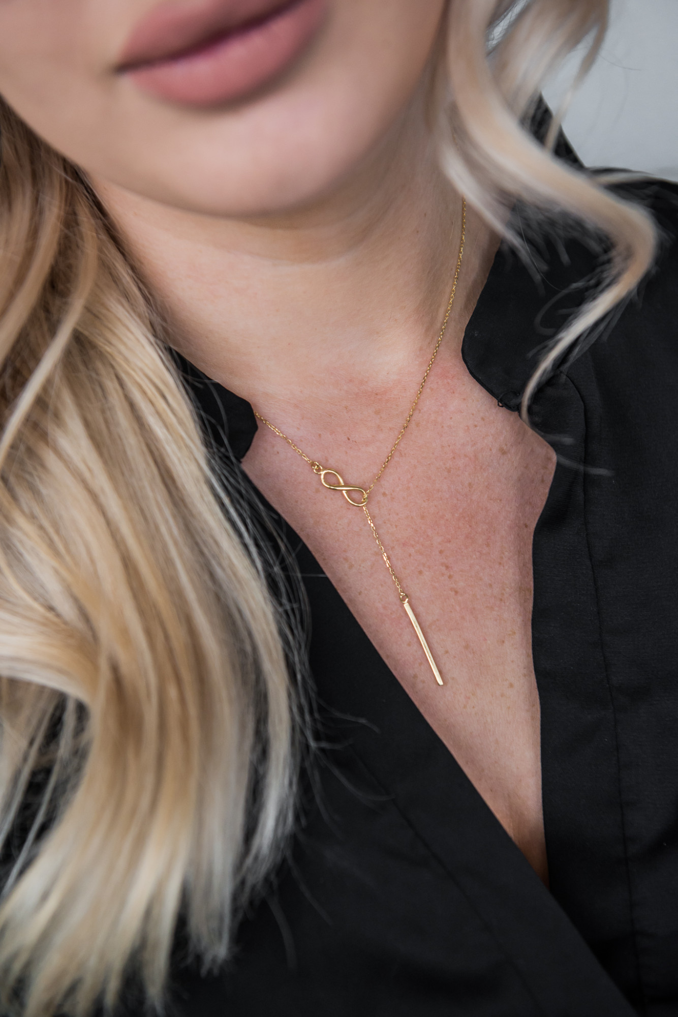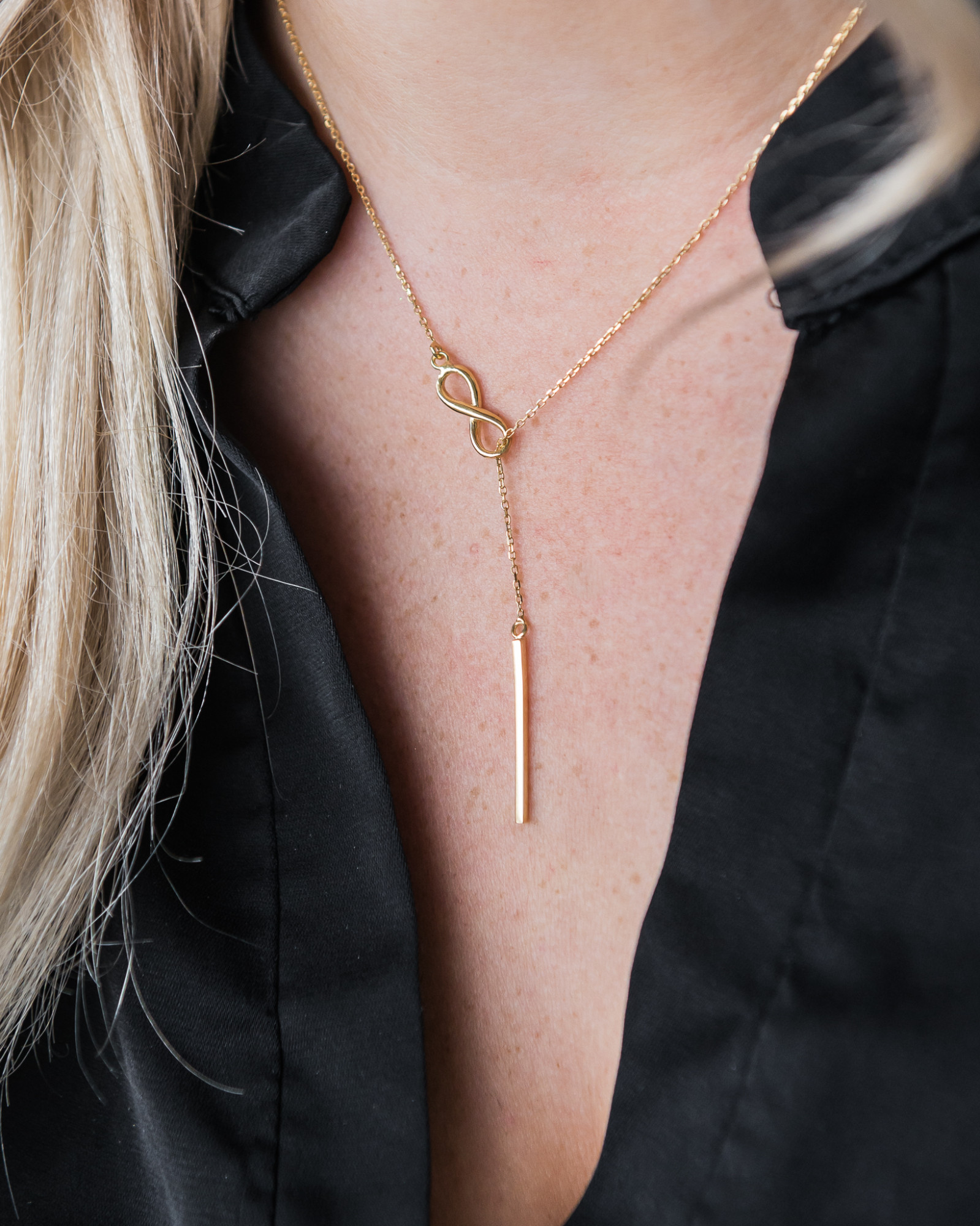 Stylowy pozłacany naszyjnik próby 925 z pałeczką i znakiem nieskończoności. Z pewnością doda blasku i wyjątkowego charakteru każdej damskiej stylizacji. Świetnie nada się do noszenia na co dzień jak i na wieczorne wyjścia. Długość łańcuszka jest regulowana od 43 cm do 46 cm. Sprawdzi się jako gustowny dodatek do każdej damskiej stylizacji. Biżuteria zapakowana w ozdobne pudełeczko z logo LeksusGold będzie wspaniałym prezentem.