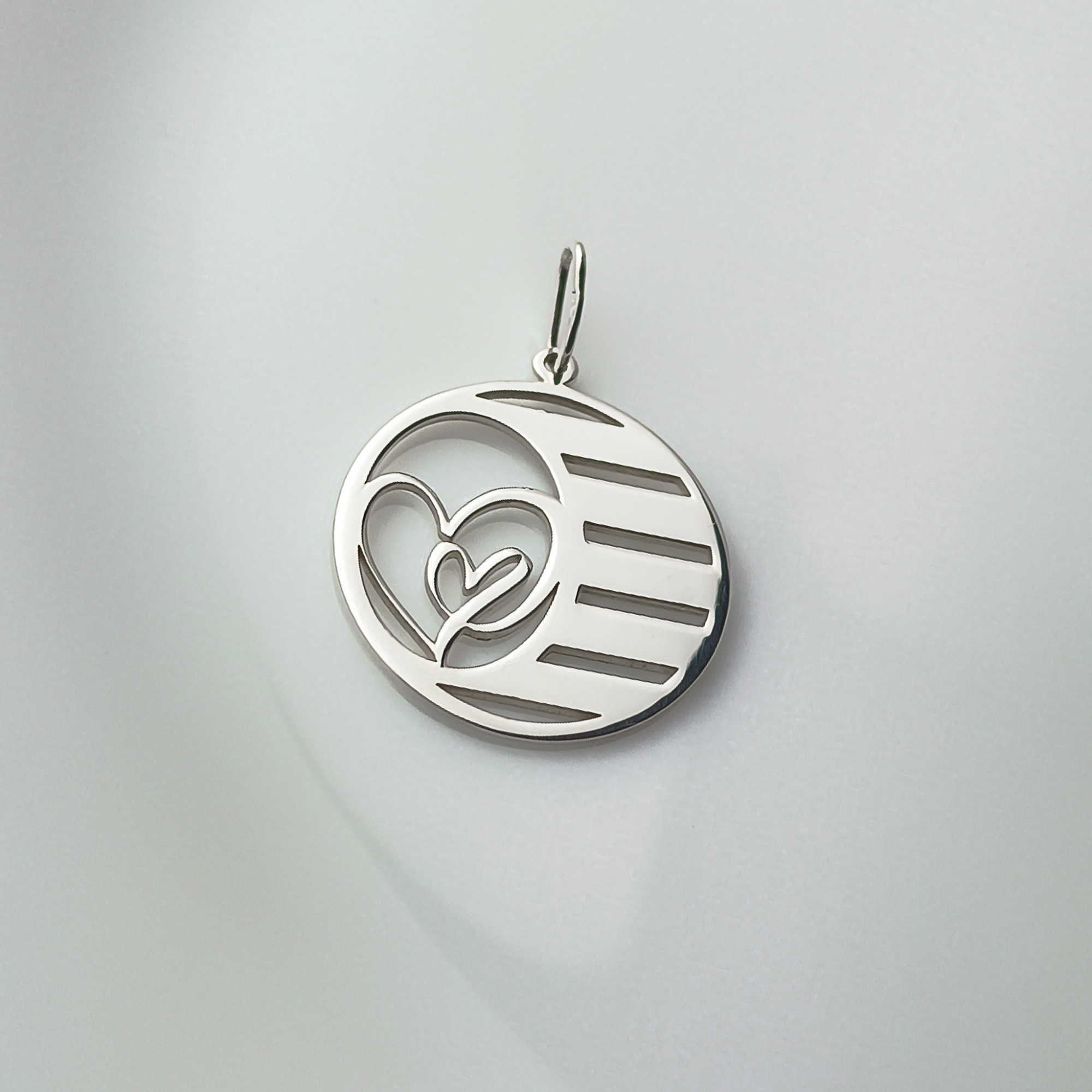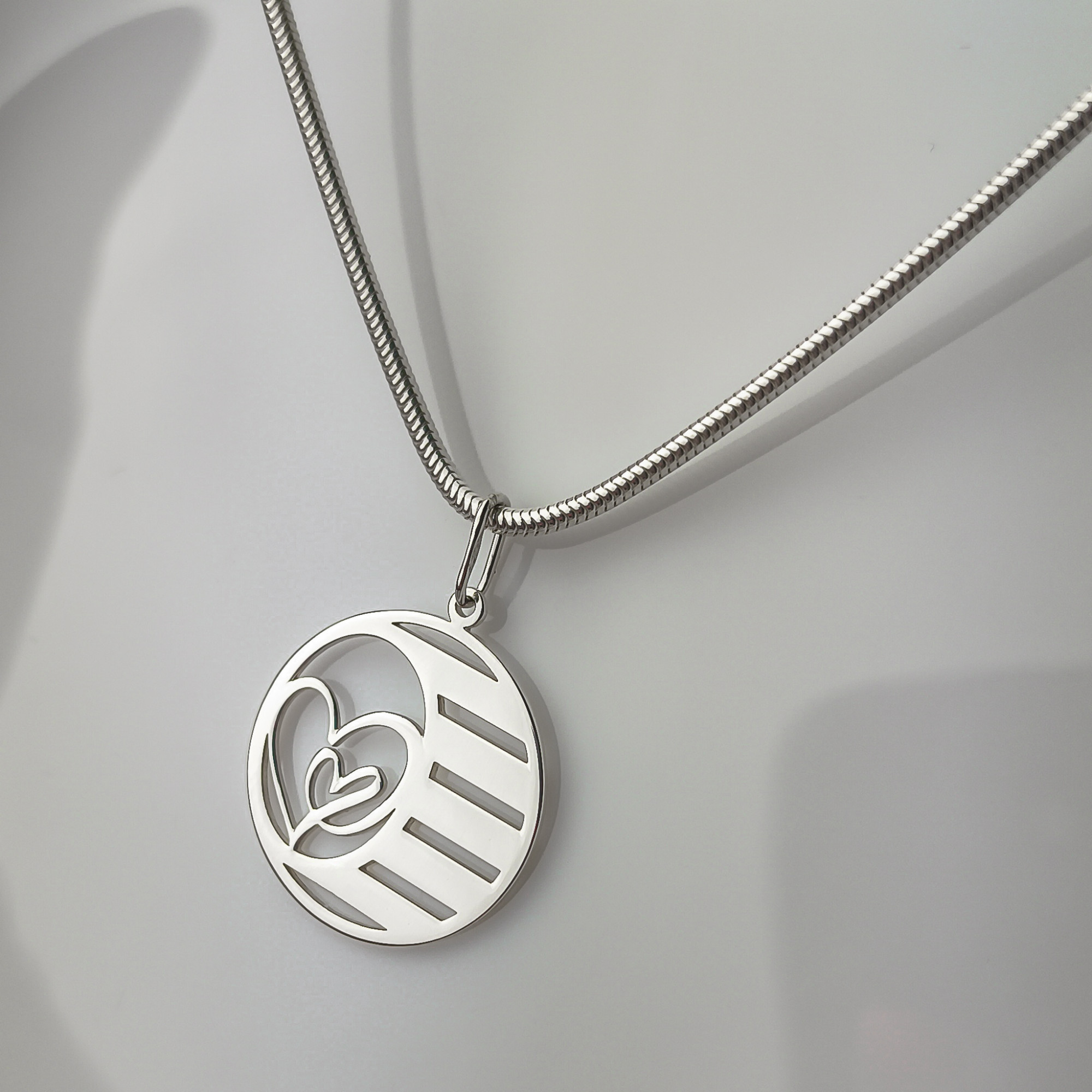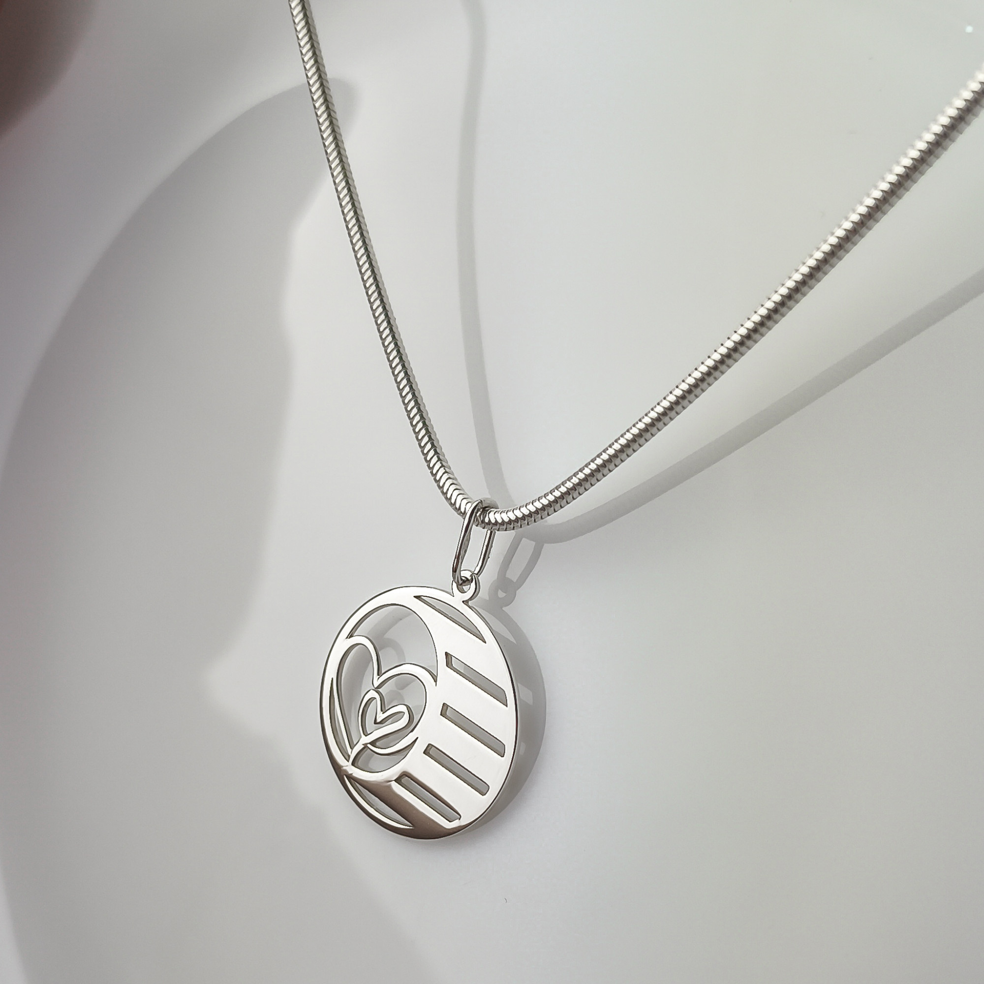 Elegancka zawieszka wykonana z wysokiej jakości srebra próby 925, zaprojektowana z myślą o osobach ceniących subtelną, a zarazem znaczącą biżuterię. Centralnym elementem wzoru są przenikające się serca, symbolizujące miłość, więź oraz relacje rodzinne i partnerskie. Całość została zamknięta w nowoczesnej, ażurowej formie koła, która dodaje lekkości i ponadczasowego charakteru.