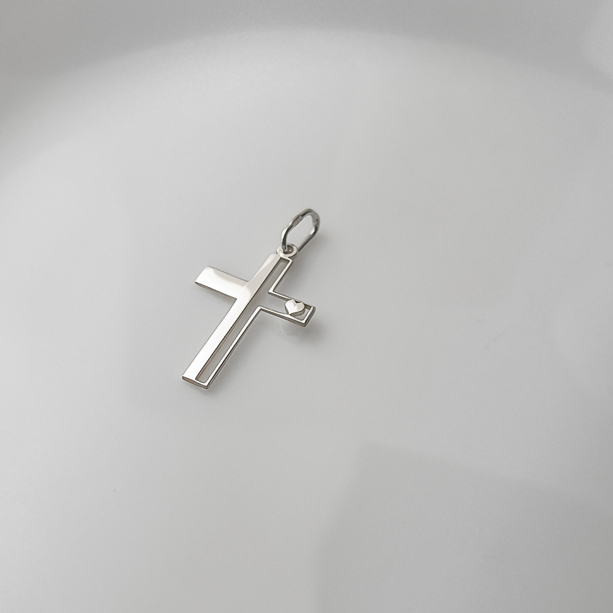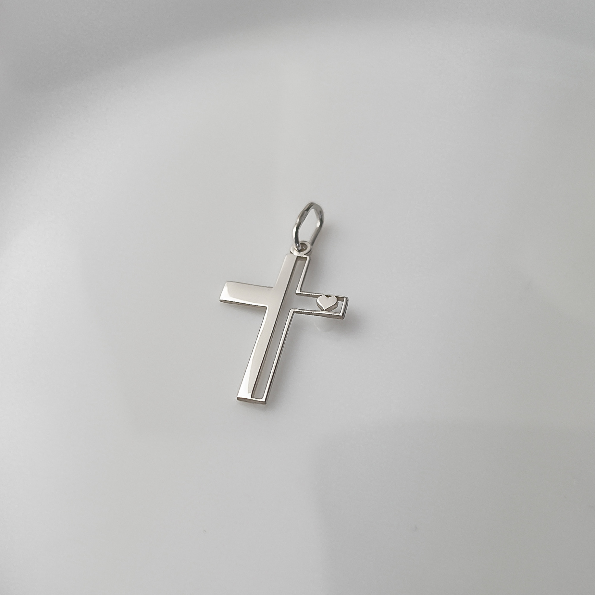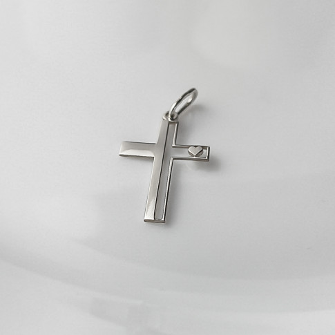 Srebrna Zawieszka piękny krzyżyk z serduszkiem idealny na I Komunię Świętą