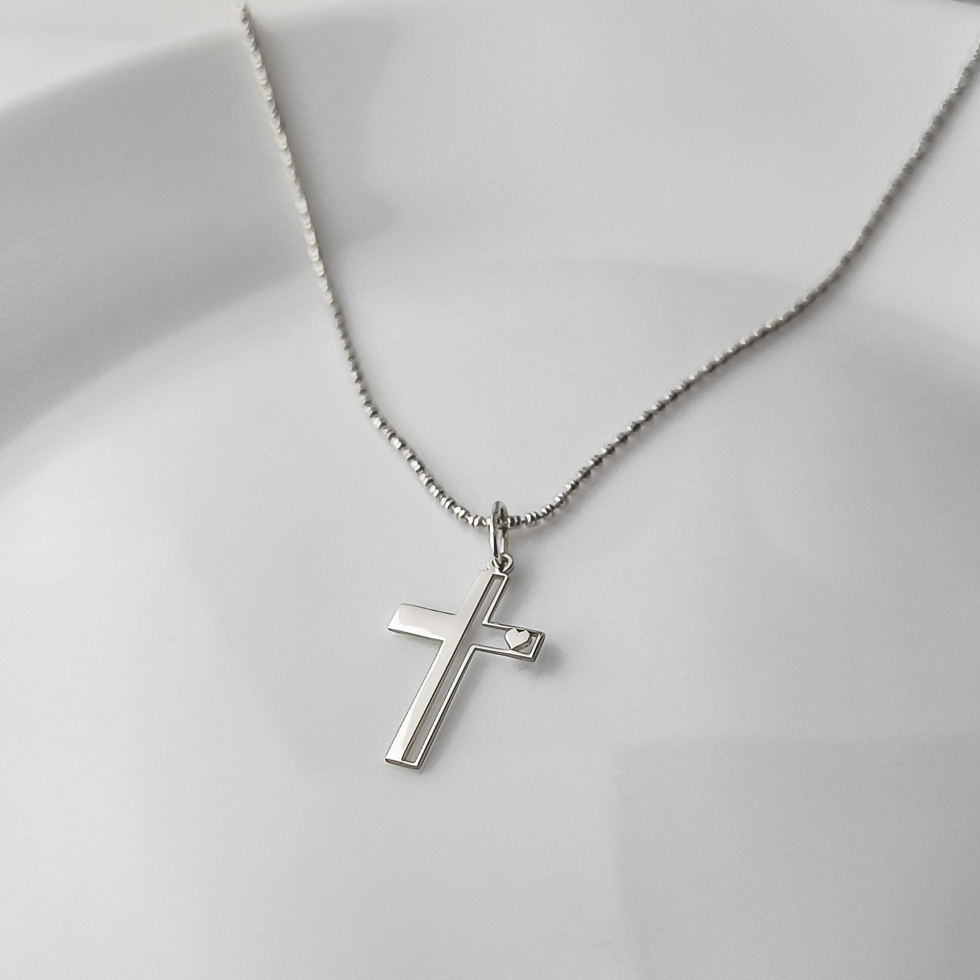Delikatny i elegancki krzyżyk wykonany z wysokiej jakości srebra próby 925 to wyjątkowa pamiątka jednego z najważniejszych dni w życiu dziecka. Subtelny design wzbogacony o drobny detal w kształcie serca symbolizuje wiarę, miłość i duchową bliskość.