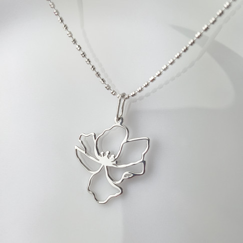 Odkryj delikatność i ponadczasową elegancję naszej srebrnej zawieszki w kształcie ażurowego kwiatu. Ta misternie wykonana biżuteria łączy minimalistyczny design z kobiecą symboliką. Lekka, otwarta forma kwiatu nadaje jej eteryczny charakter, a jednocześnie sprawia, że jest to dodatek zauważalny, ale nienachalny.