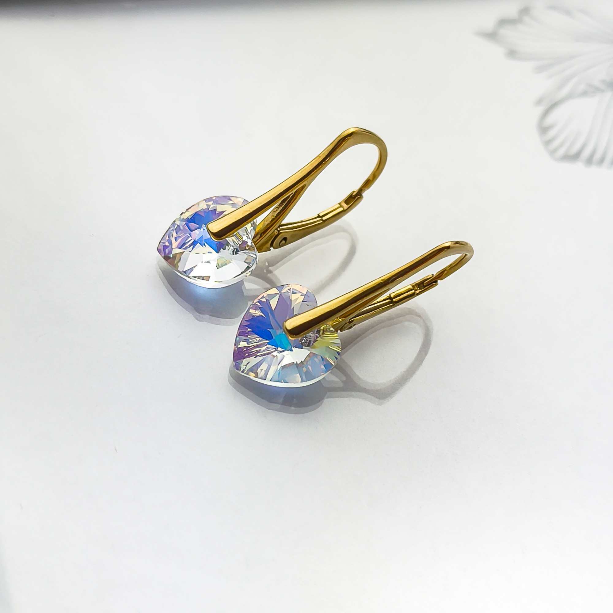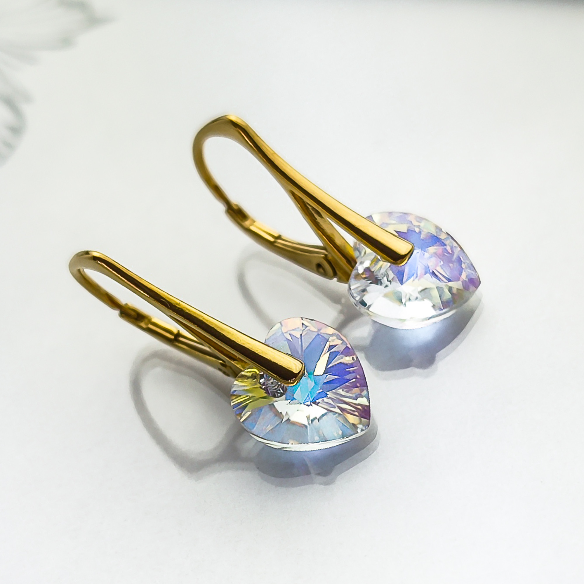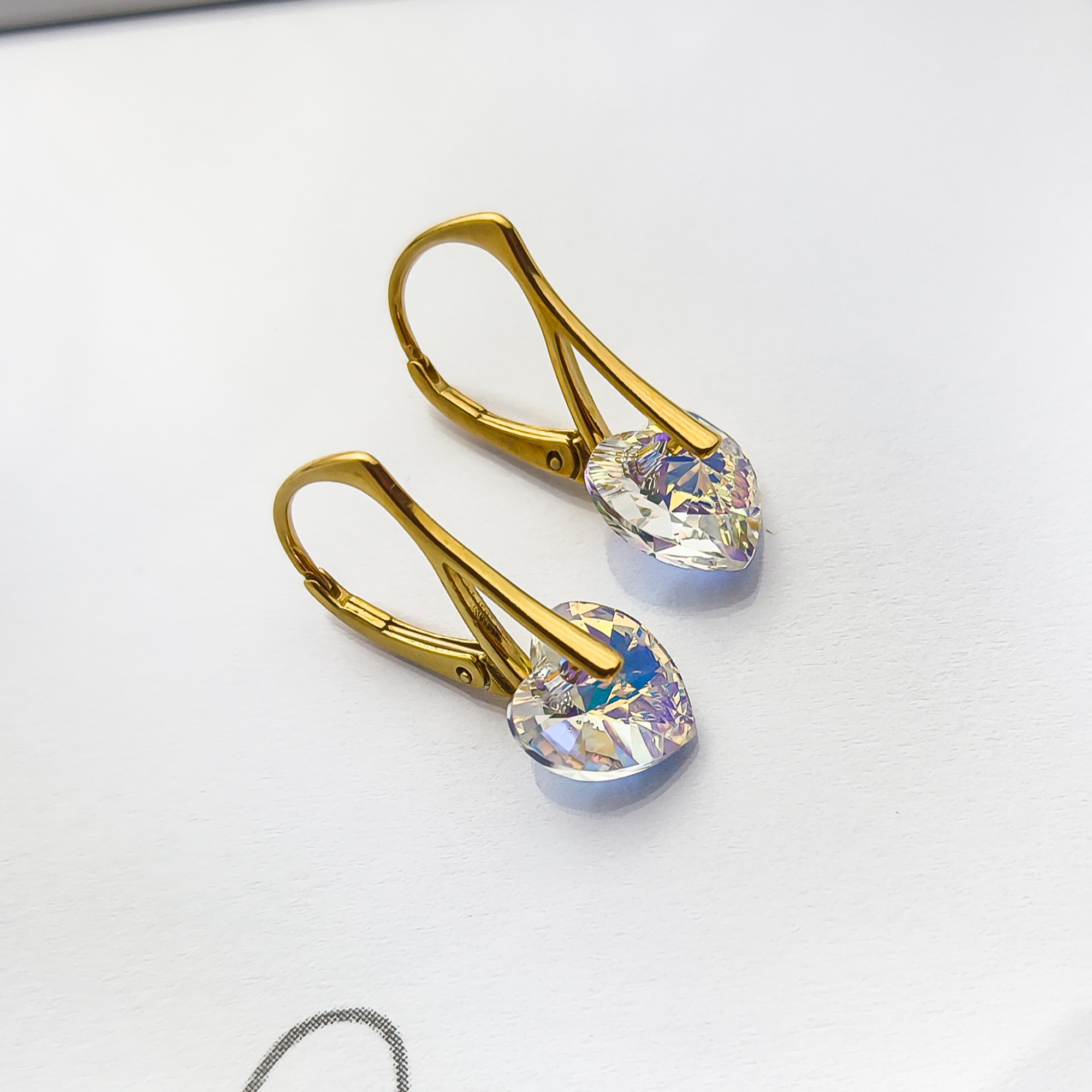 Te przepiękne, złocone kolczyki emanują subtelnym luksusem i romantycznym urokiem. Ich centralnym punktem jest precyzyjnie szlifowany kryształ w kształcie serca, który posiada zjawiskowy efekt Crystal AB.