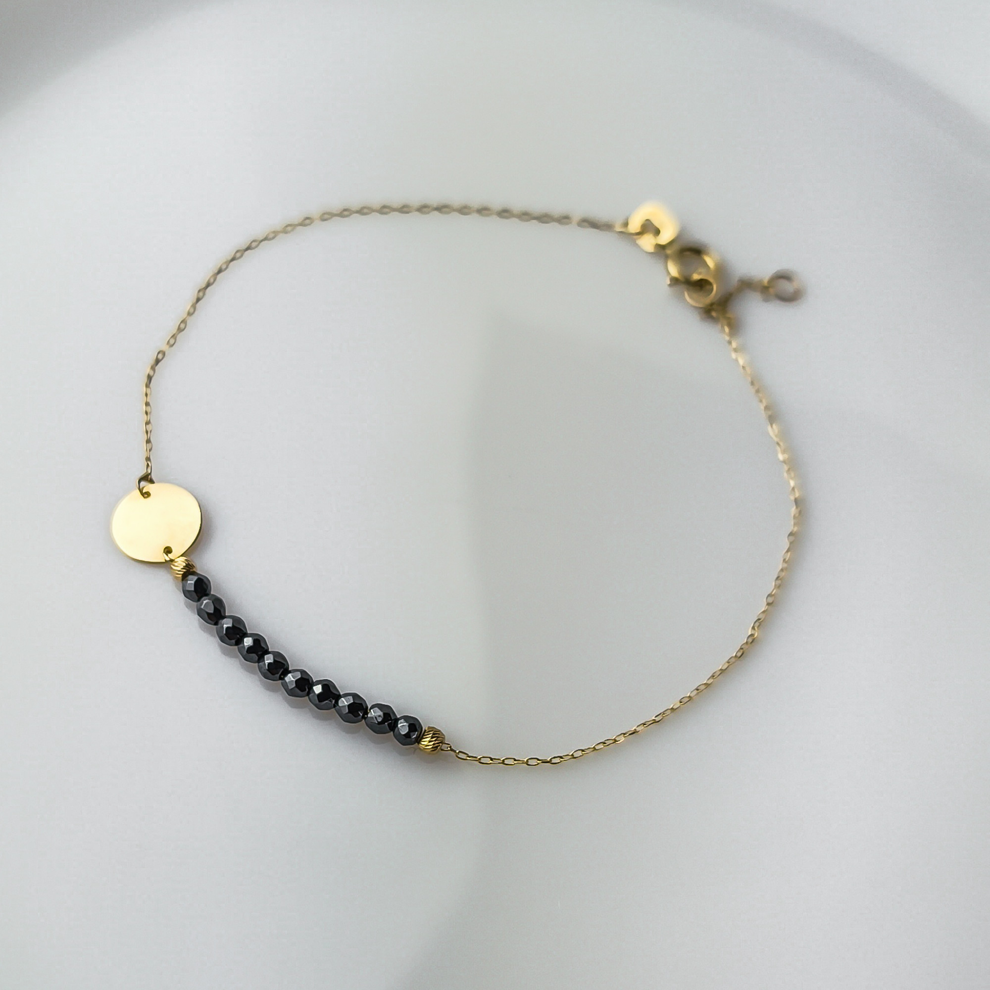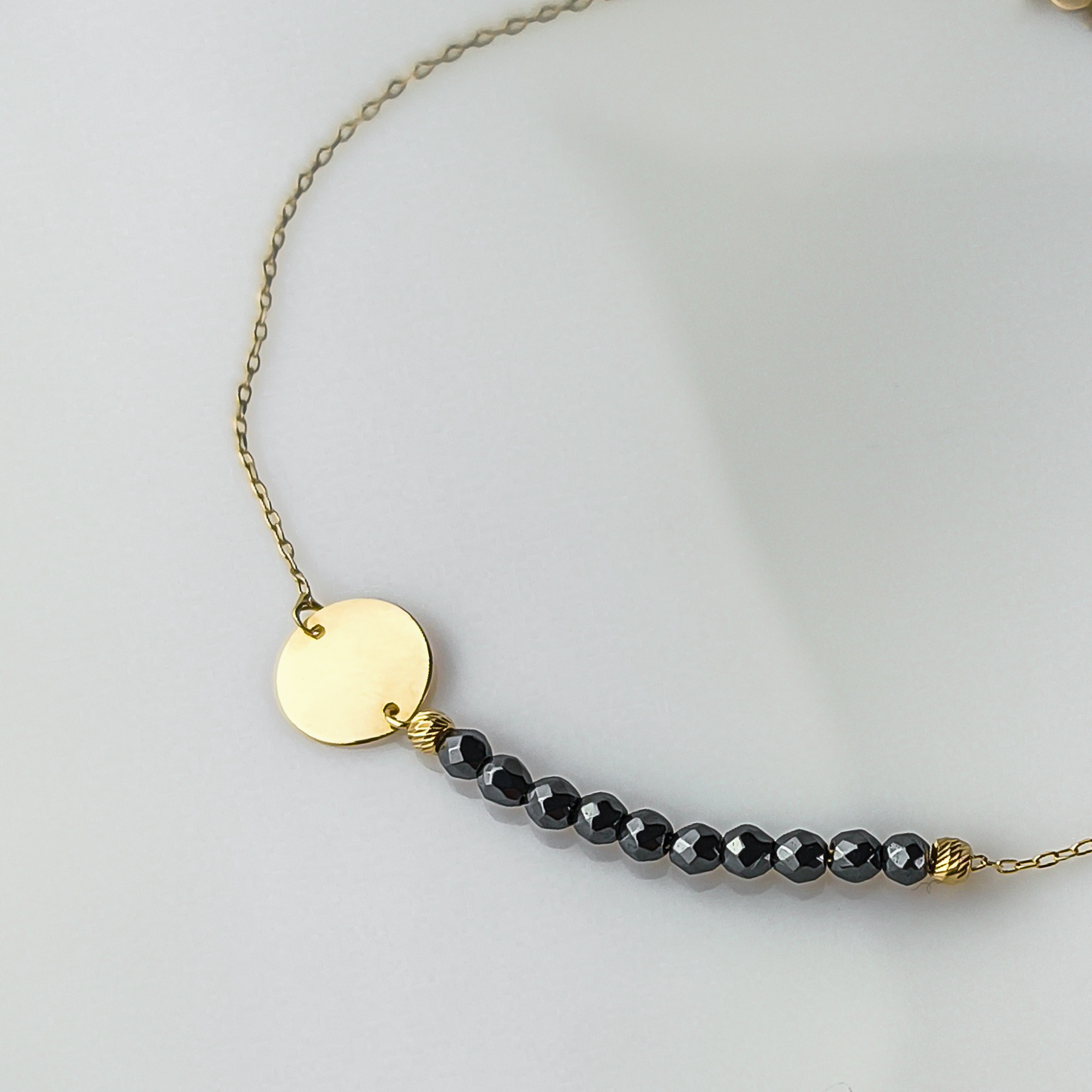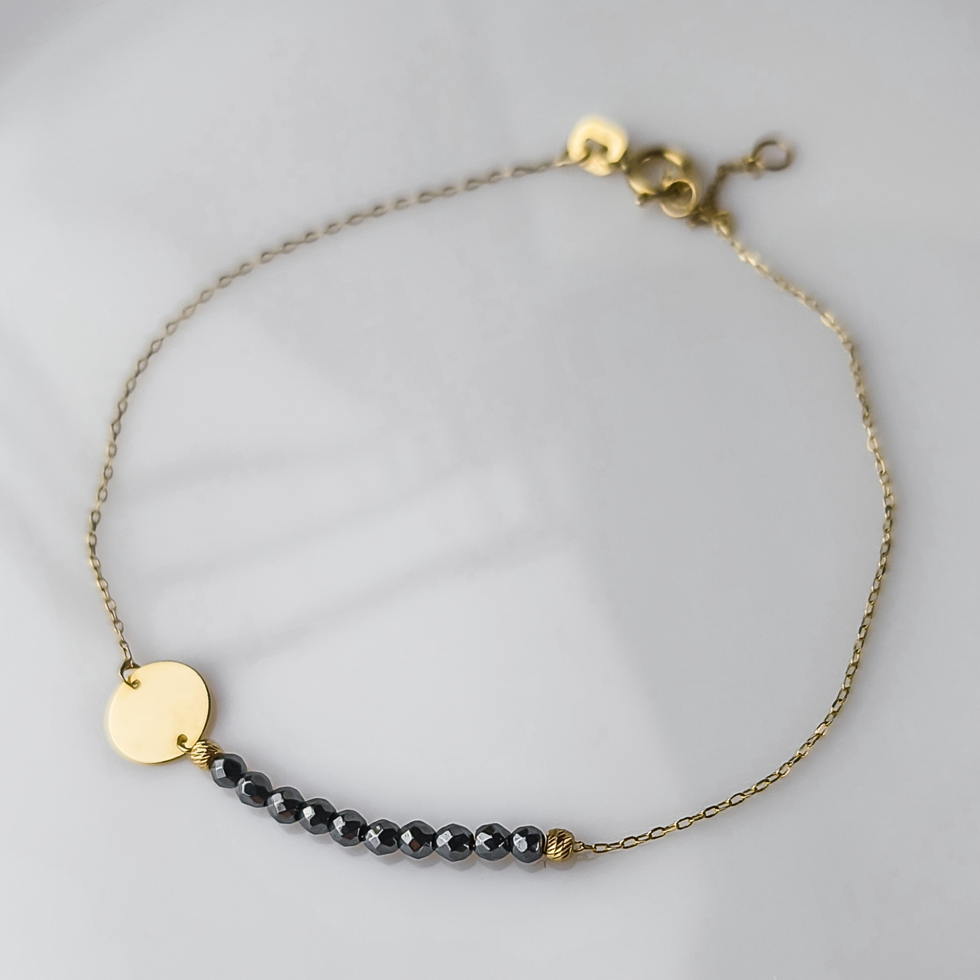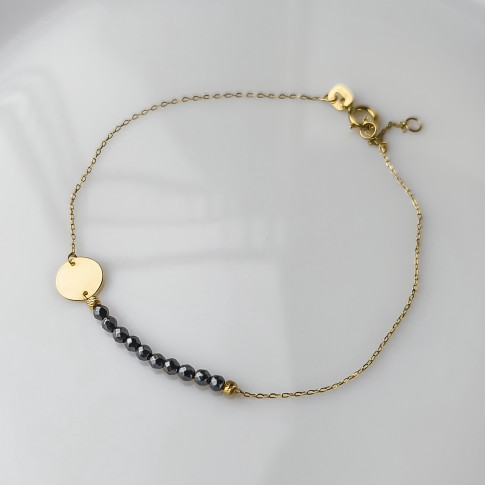 Niepowtarzalna nowoczesna forma zamknięta w złotej celebrytce. Delikatne kółko z pięknie połyskującymi grafitowymi kamieniami nadadzą szyku stylizacji na każdą okazję. Świetny pomysł na oryginalny pomysł, na prezent dla każdej kobiety. Biżuteria zakupiona u nas pakowana jest w eleganckie pudełka firmowe z logo LeksusGold. Dodatkowo mamy możliwość wykonania graweru na blaszce i umieszczeniu jej w pudełku. Skorzystaj z naszych wzorów lub stwórz własny oryginalny tekst graweru.