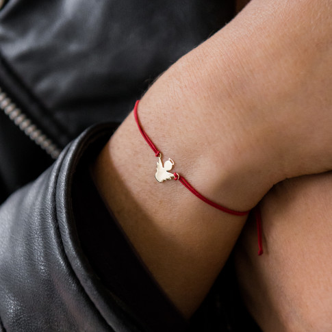 Złota bransoletka na czerwonym sznurku z motywem aniołka pr.585