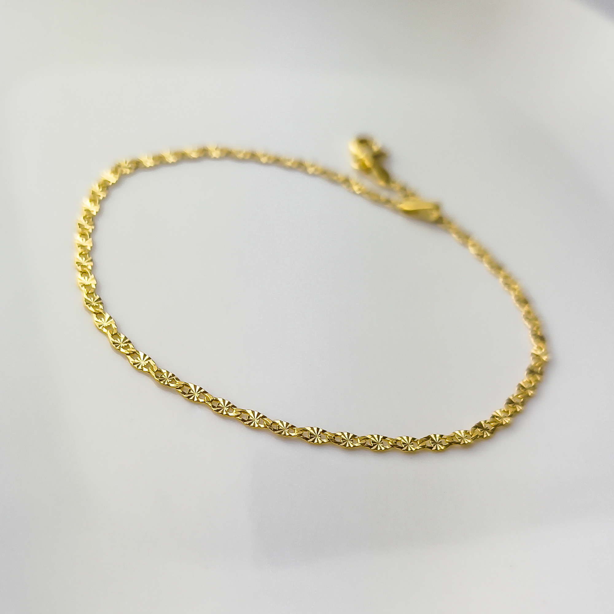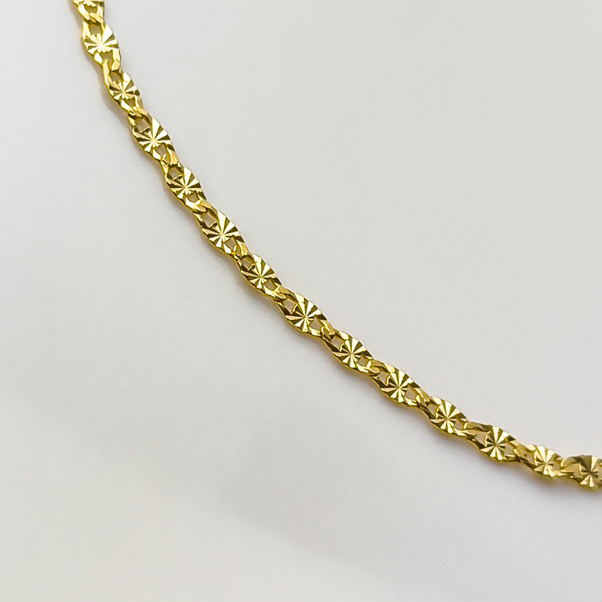 Dzięki temu łańcuszek mieni się przy każdym ruchu i wygląda lekko, a jednocześnie elegancko. To bardzo kobiecy, dekoracyjny splot – świetnie prezentuje się solo, ale też idealnie podkreśla zawieszkę.
