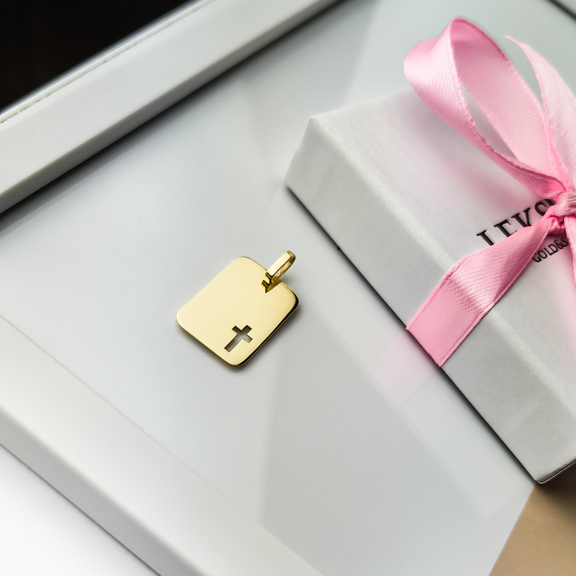 Złota zawieszka idealna pod grawer. Wykonana ze złota próby 585. To doskonały tradycyjny pomysł na prezent z okazji przyjęcia Chrztu Świętego, Komunii Świętej, Bierzmowania lub innej uroczystości. Na zawieszcze możemy umieścić grawer - tekst dowolny. Dodatkowo mamy możliwość wykonania graweru na blaszce i umieszczeniu jej w pudełku - grawer jest w cenie zakupionego produktu. Skorzystaj z naszych wzorów lub stwórz własny oryginalny tekst graweru - usługa GRATIS. Pięknie zapakowany w nasze firmowe pudełko będzie niespodzianką dla każdego.