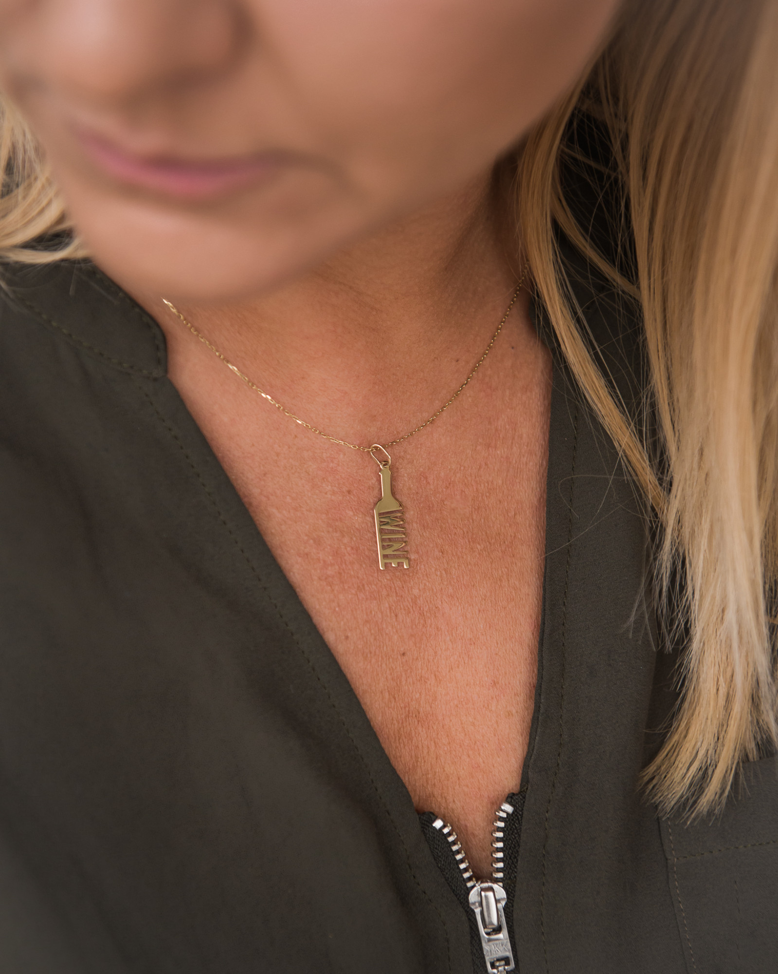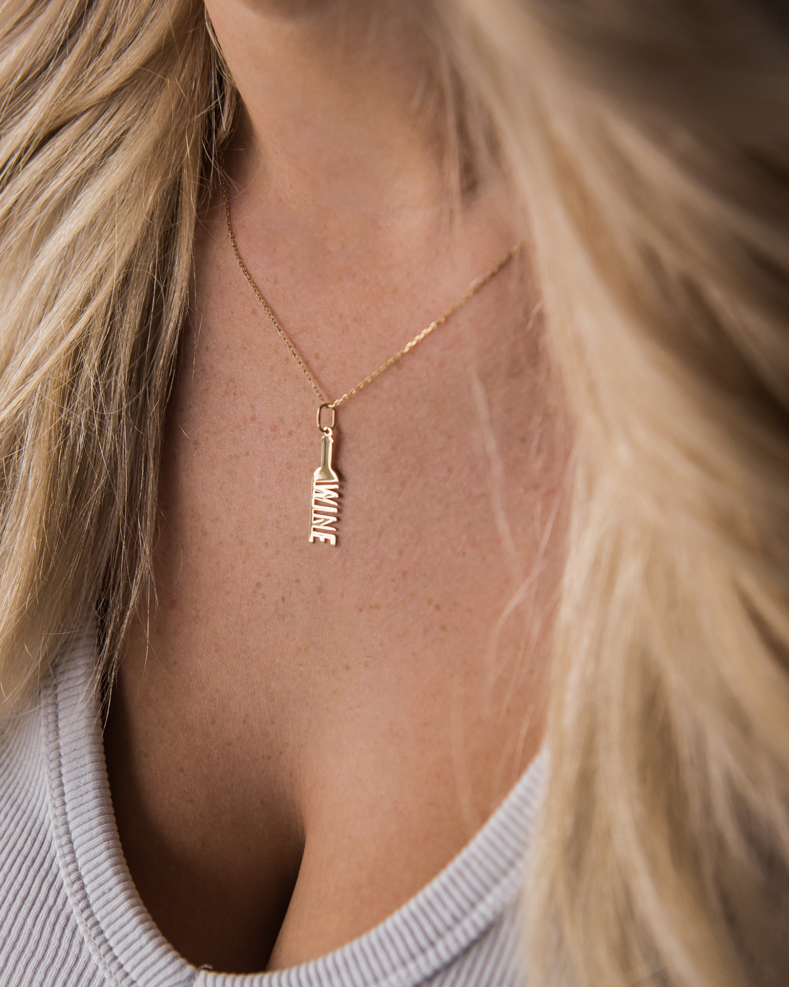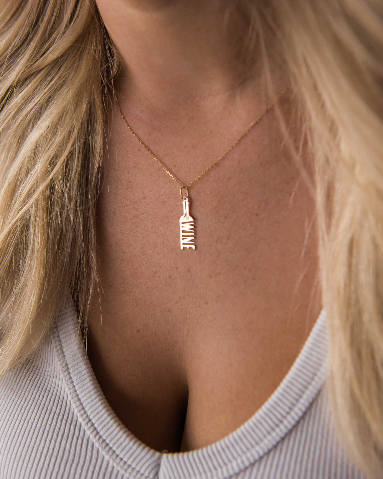 Przedstawiamy niezwykłą złotą zawieszkę, która z pewnością zachwyci każdego miłośnika wina i dobrego smaku. Wykonana z najwyższej jakości złota próby 585, ta oryginalna zawieszka w kształcie butelki wina z ażurowym napisem "WINE" to stylowy sposób na wyrażenie swojej pasji.