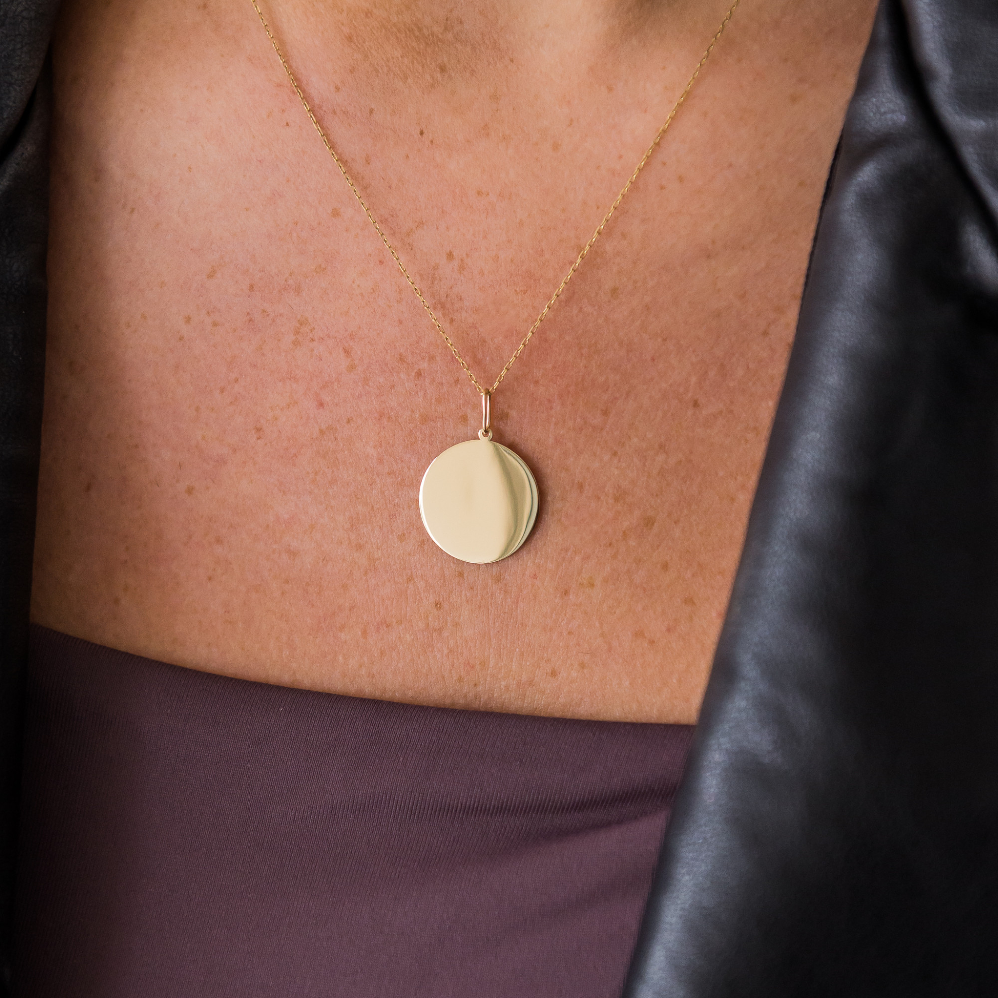 Wykonana z lśniącego złota próby 585, ta elegancka blaszka o okrągłym kształcie to idealna baza do personalizacji.