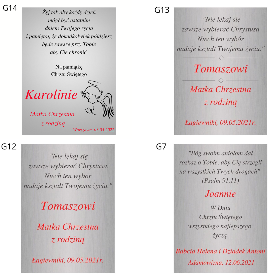 Skorzystaj z naszych wzorów lub stwórz własny oryginalny tekst graweru - usługa GRATIS.