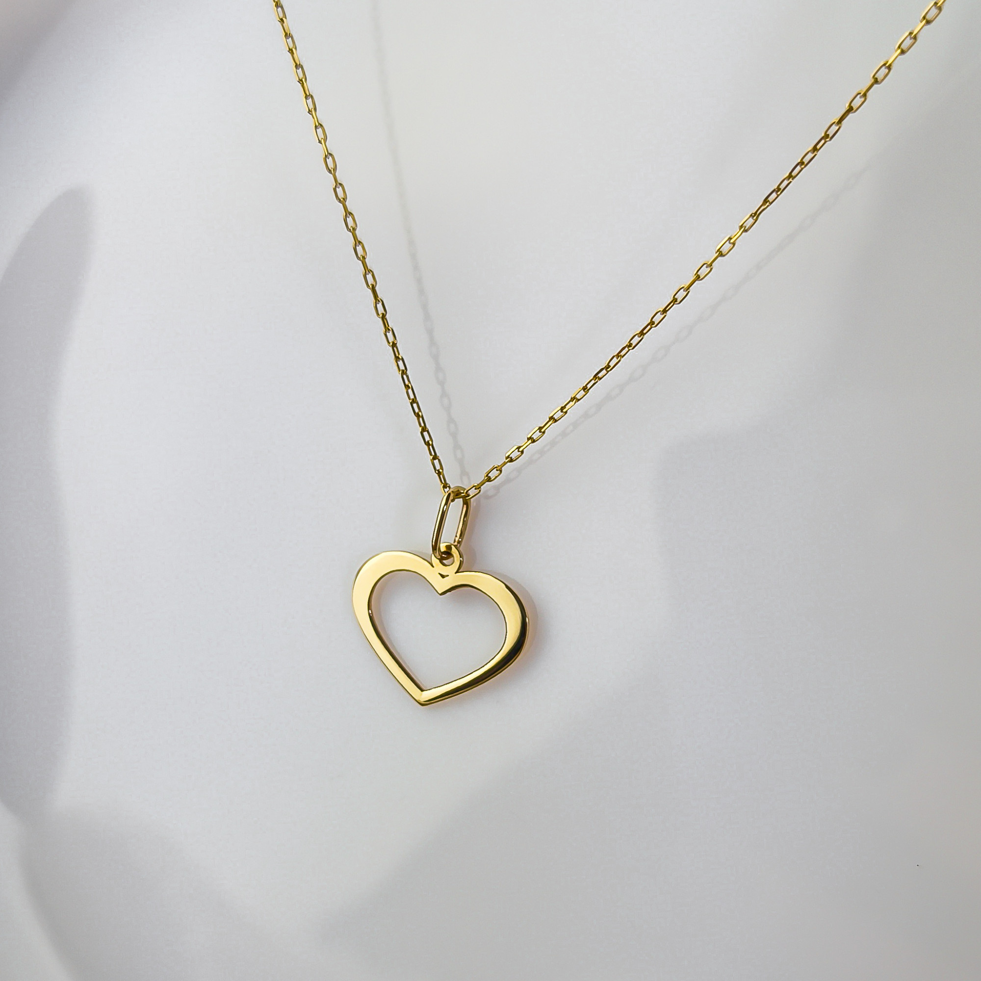 Złota zawieszka wykonana ze złota próby 585 w kształcie otwartego serca to hołd dla minimalistycznej elegancji i ponadczasowej symboliki. Powierzchnia zawieszki została wypolerowana na wysoki połysk, dzięki czemu każdy ruch sprawia, że złoto „pracuje” ze światłem, odbijając je i rozświetlając Twoją cerę ciepłym, szlachetnym blaskiem.