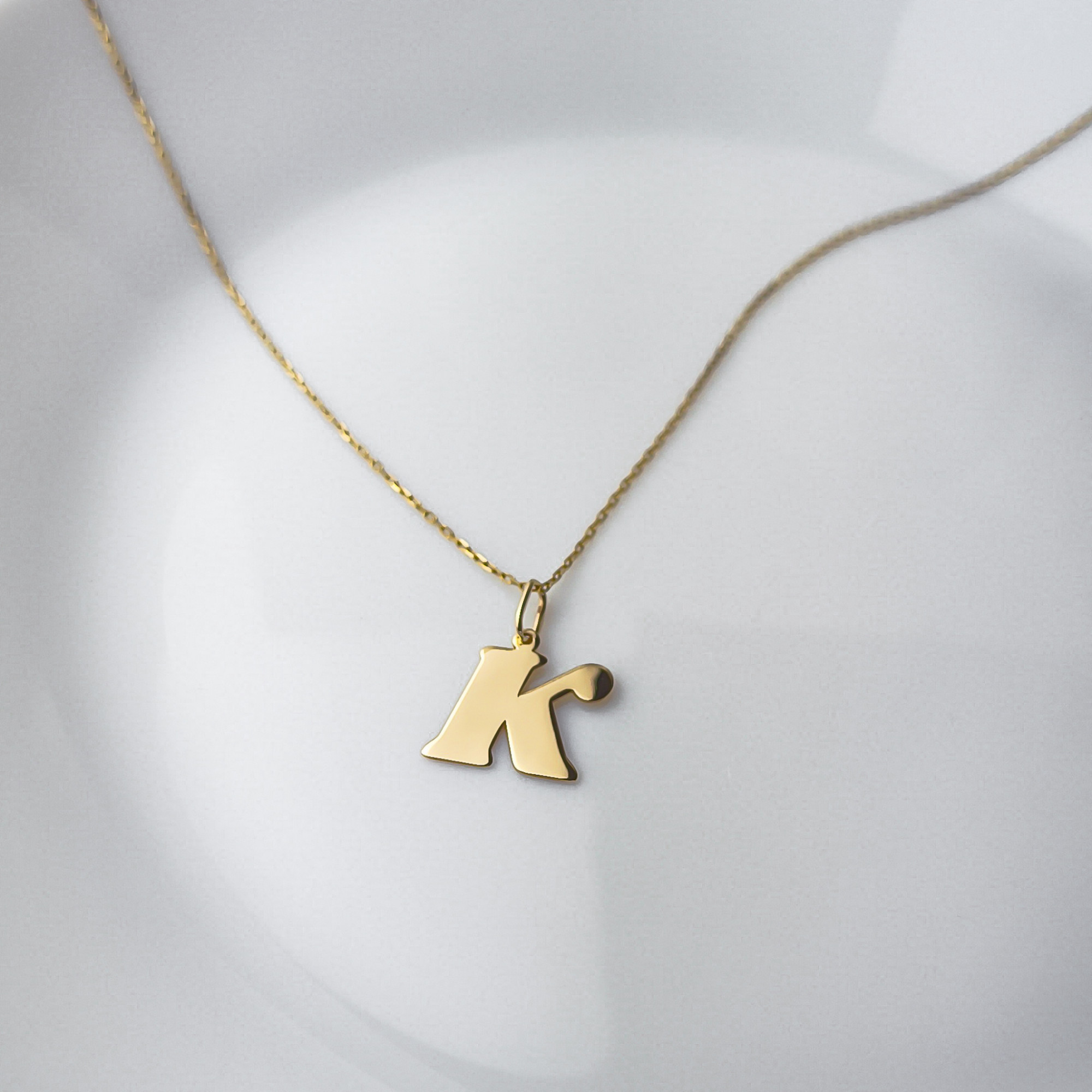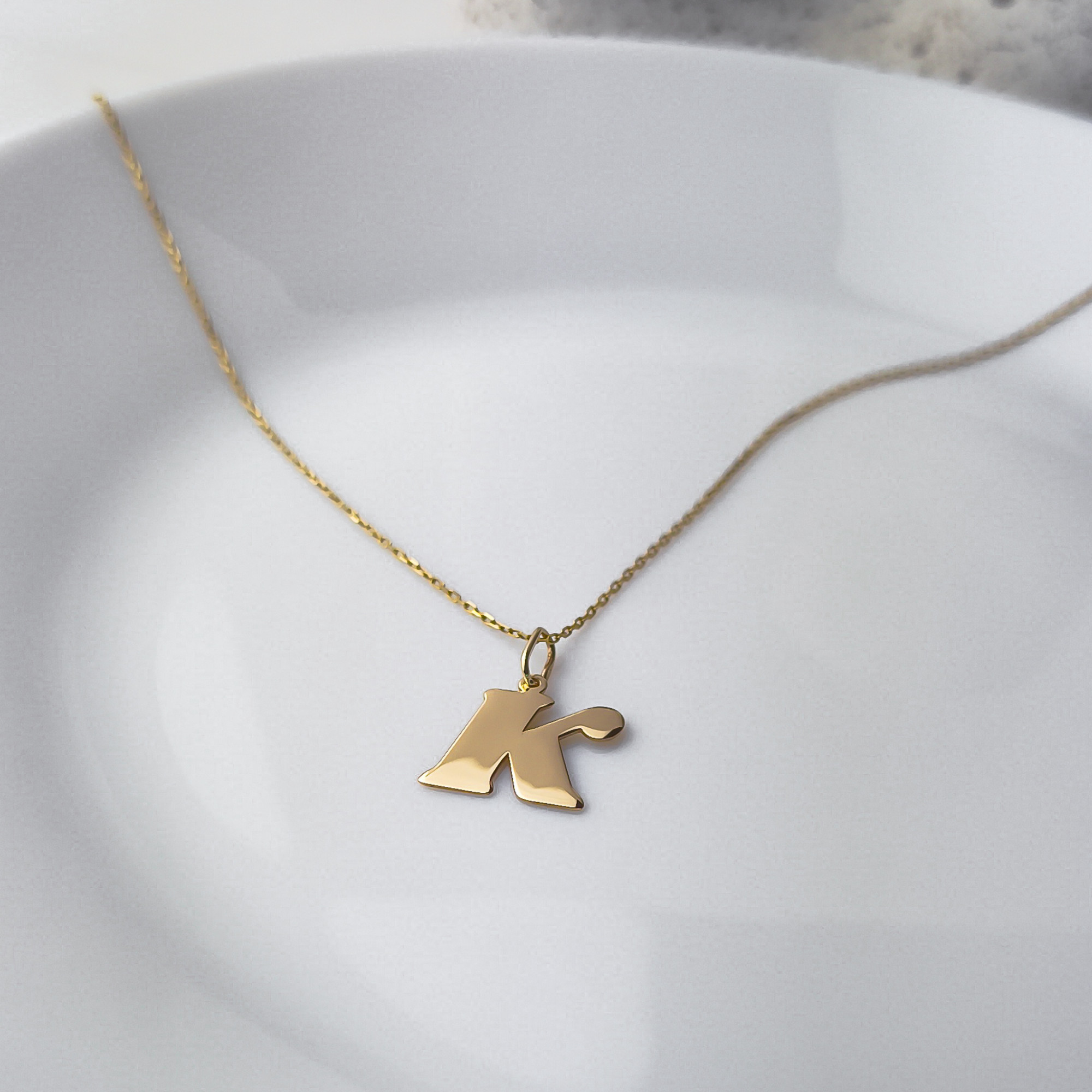 Złota zawieszka literka K "KOLEKCJA SIGNATURE" z możliwością graweru - pr.585