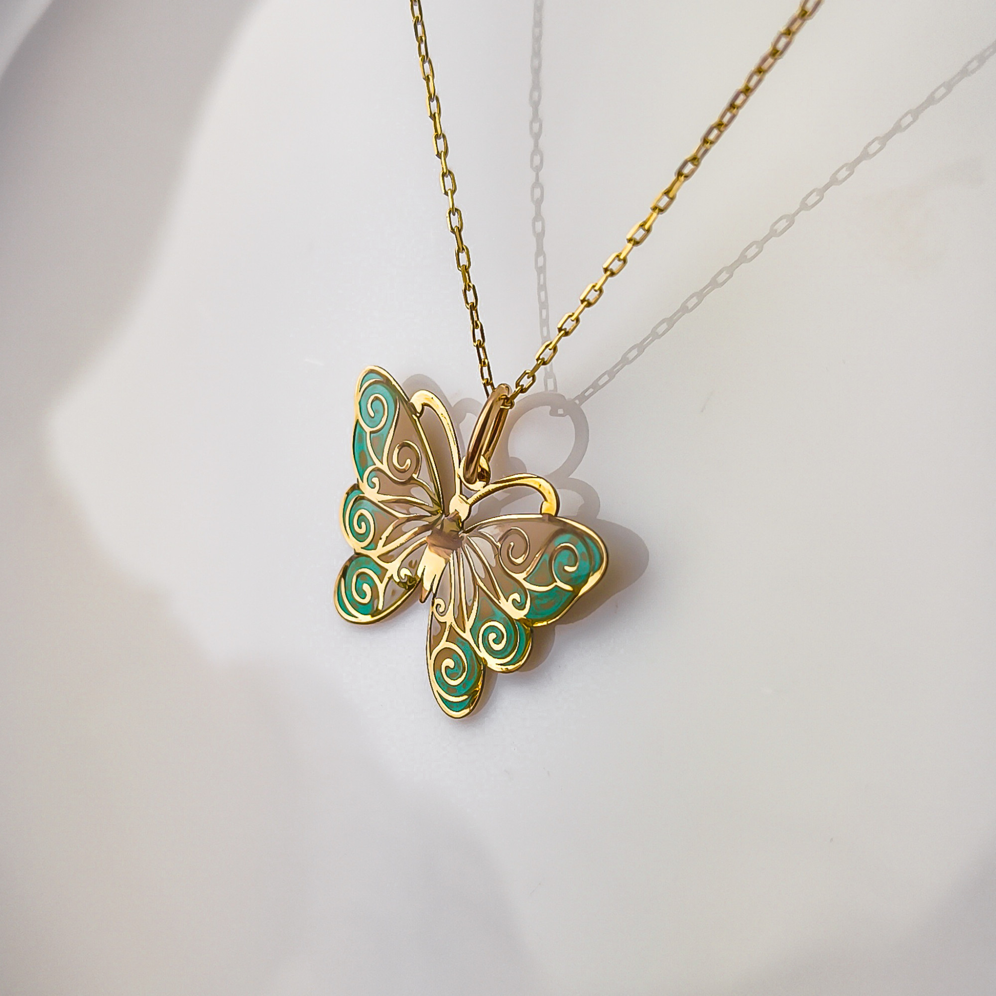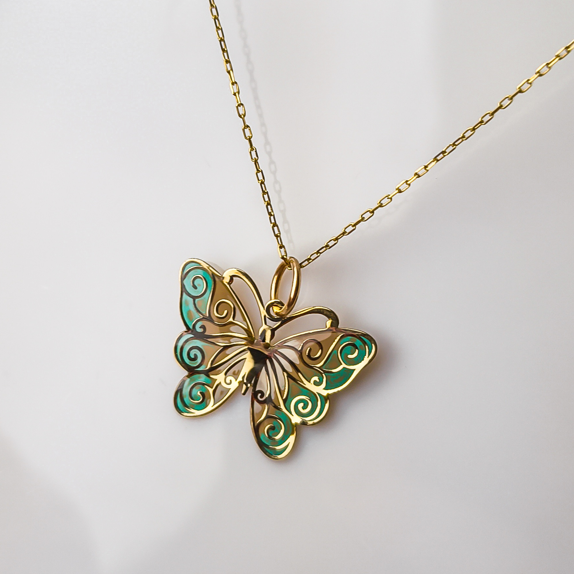 Złota zawieszka z motywem motylka. Z pewnością doda blasku i wyjątkowego charakteru każdej stylizacji. Produkt dostępny w naszej ofercie wykonany jest w naszej pracowni ze złota próby 585. Biżuteria zapakowana w ozdobne pudełko będzie wspaniałym prezentem. Zawieszka to idealny i bezpieczny wybór na prezent dla kobiety. Jeśli nie masz pewności, co podarować żonie, mamie czy koleżance, zawieszka będzie strzałem w dziesiątkę. Obdarowana osoba z pewnością doceni ten gest oraz ponadczasowy styl.