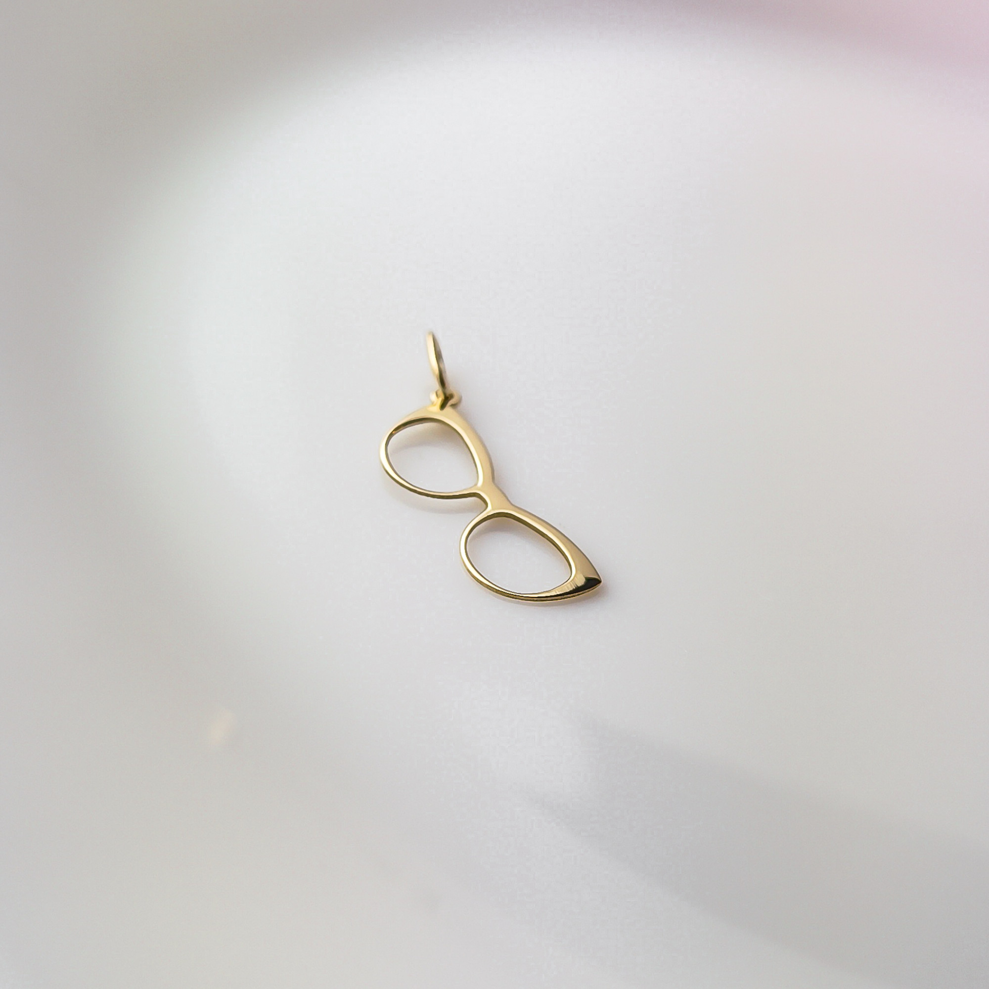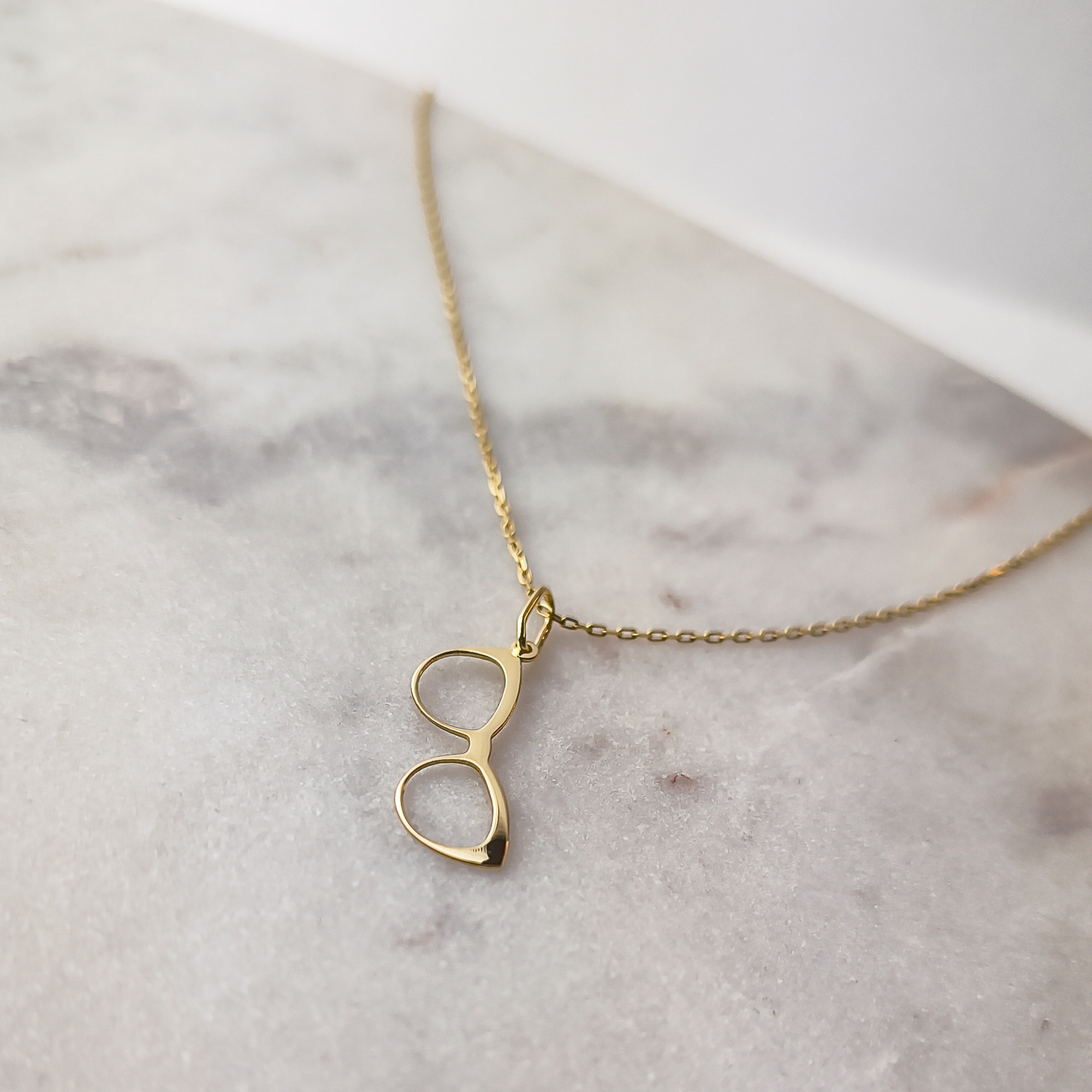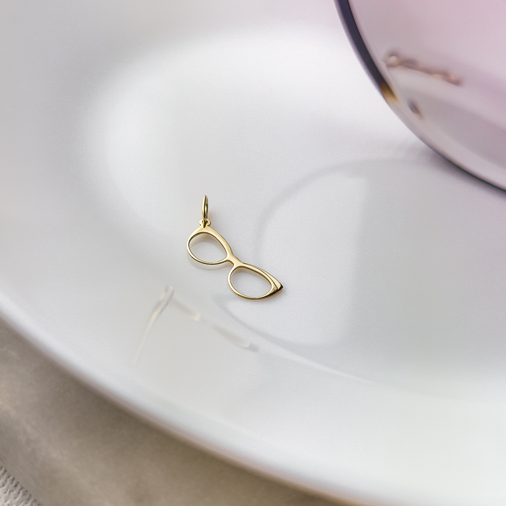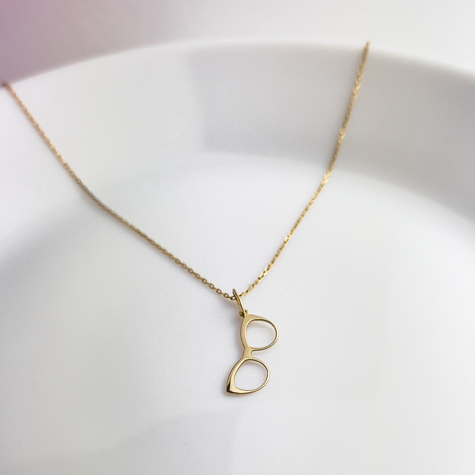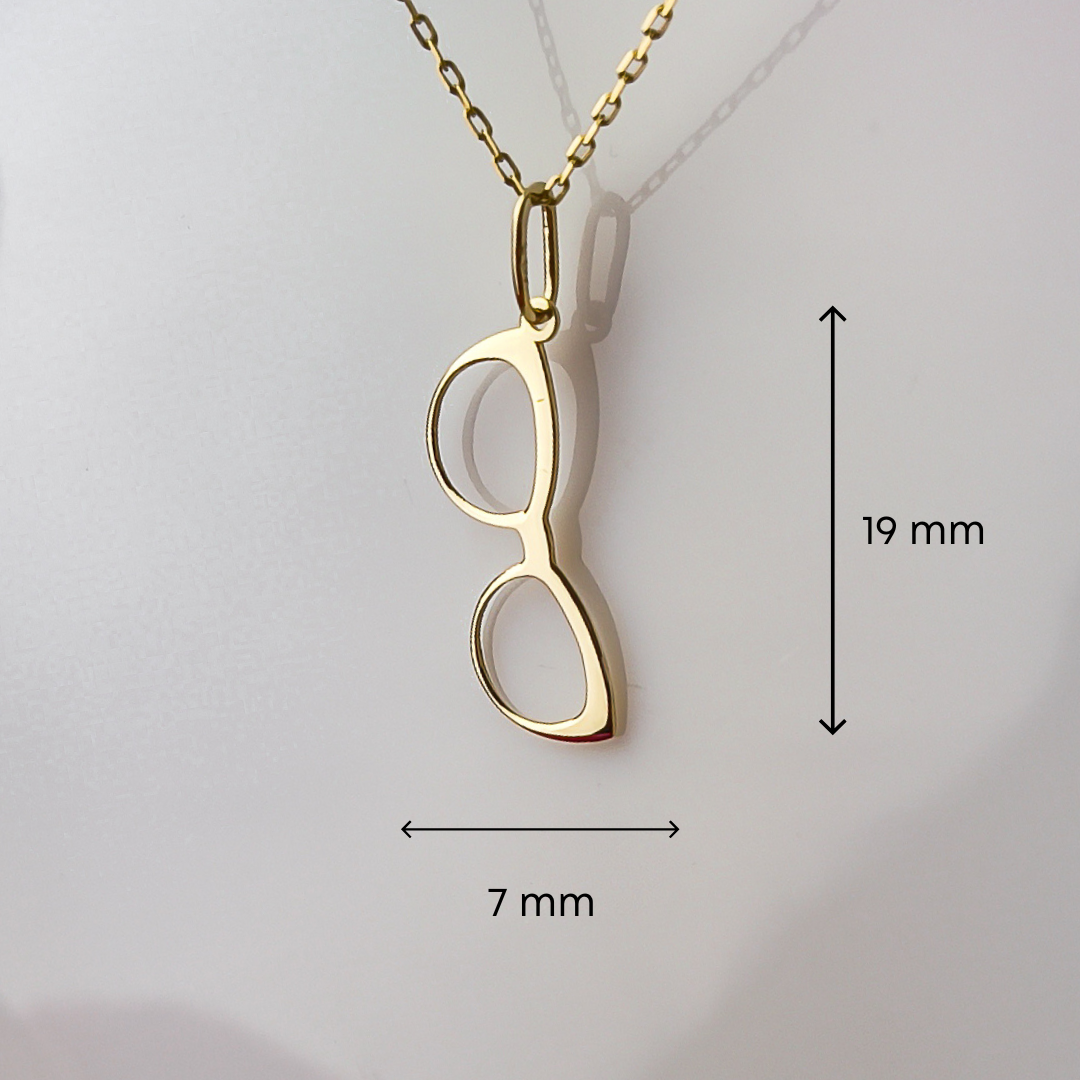 Minimalistyczna, stylowa i z charakterem, złota zawieszka w kształcie okularów to subtelny, a zarazem oryginalny akcent, który podkreśli indywidualność i pasję swojej właścicielki.