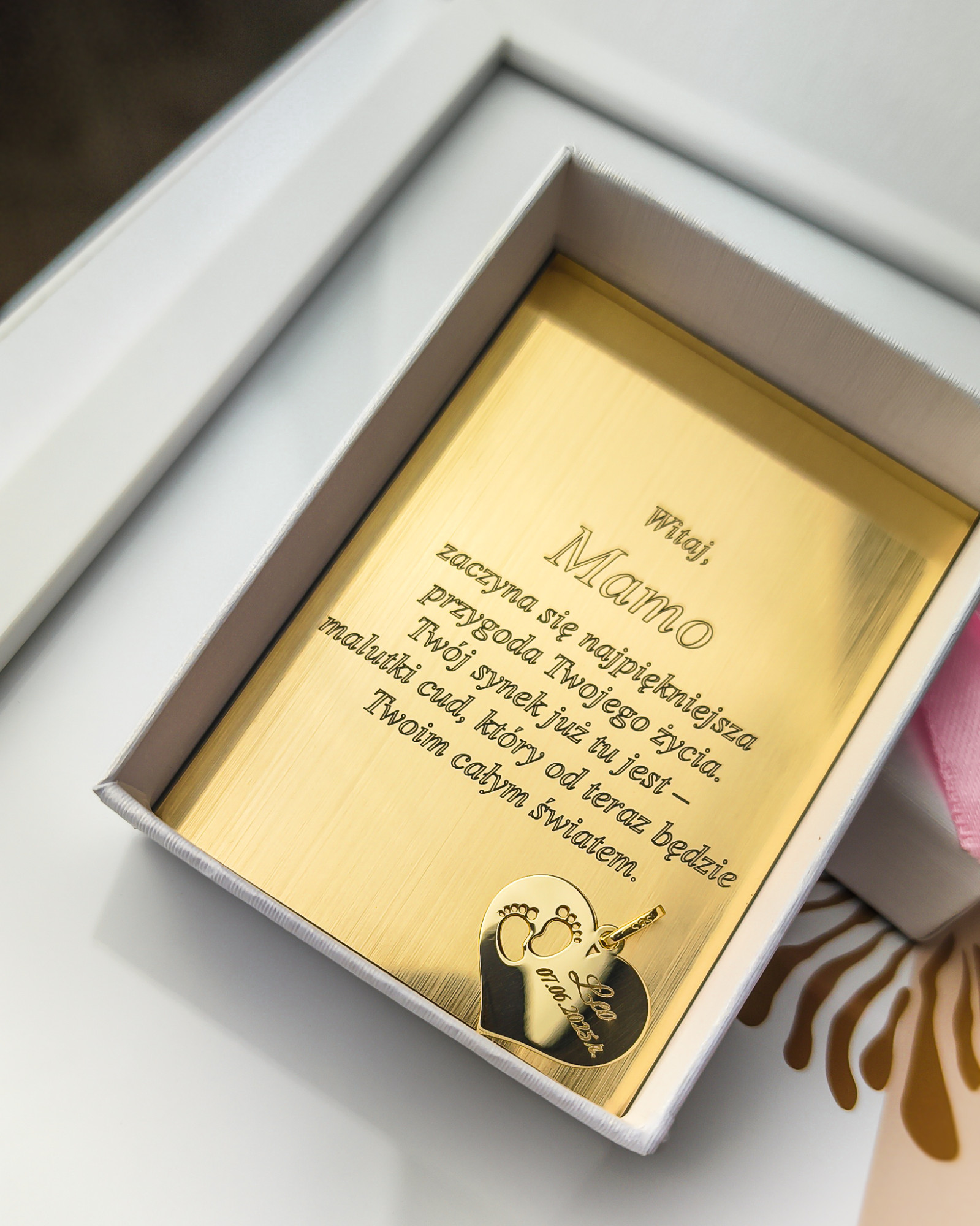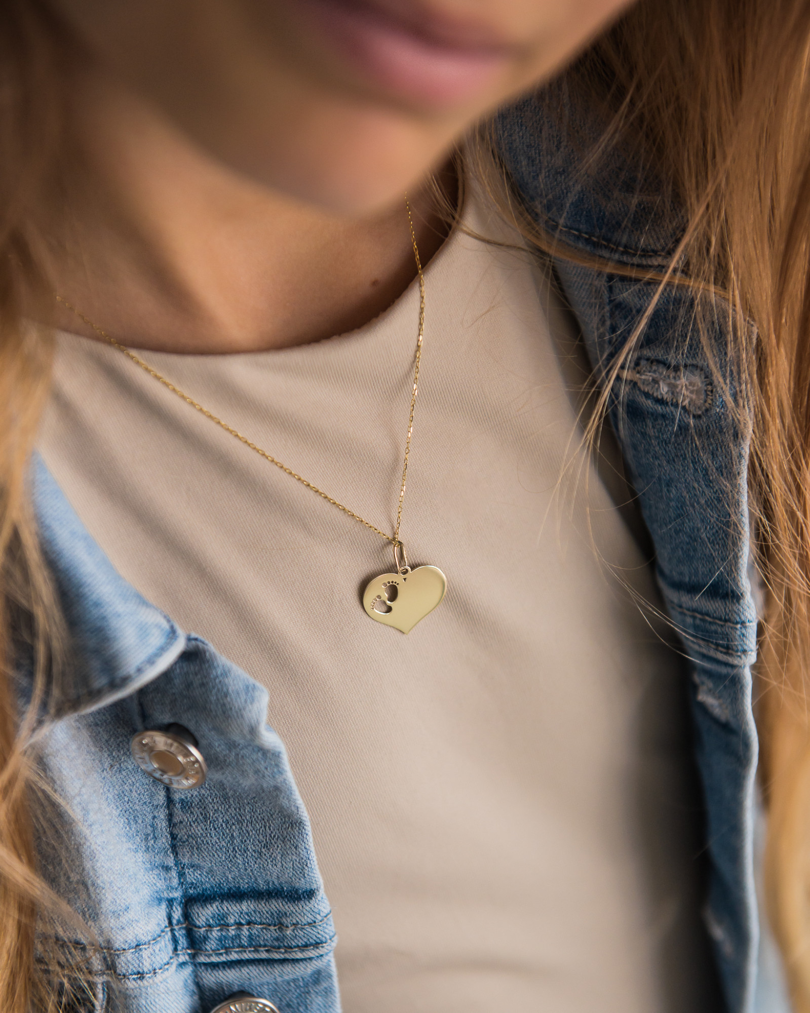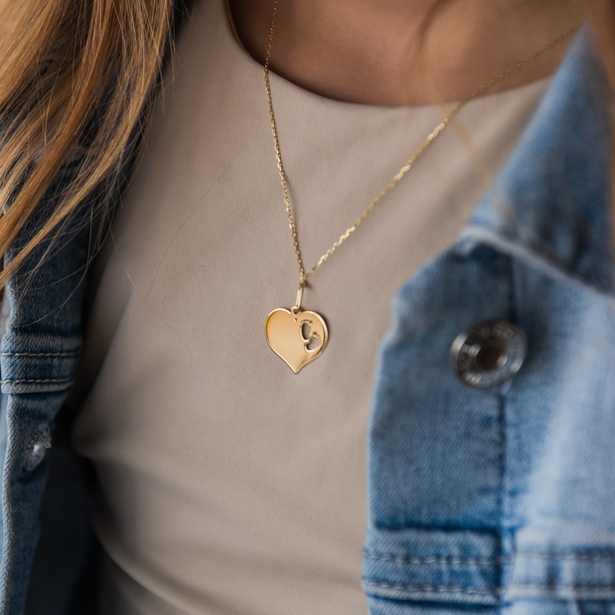 Złota zawieszka w kształcie serca z wyciętymi stópkami. Wykonana z wysokiej jakości złota, idealna na prezent dla mamy lub przyszłej mamy. Zawieszka, która pasuje do wszystkiego!