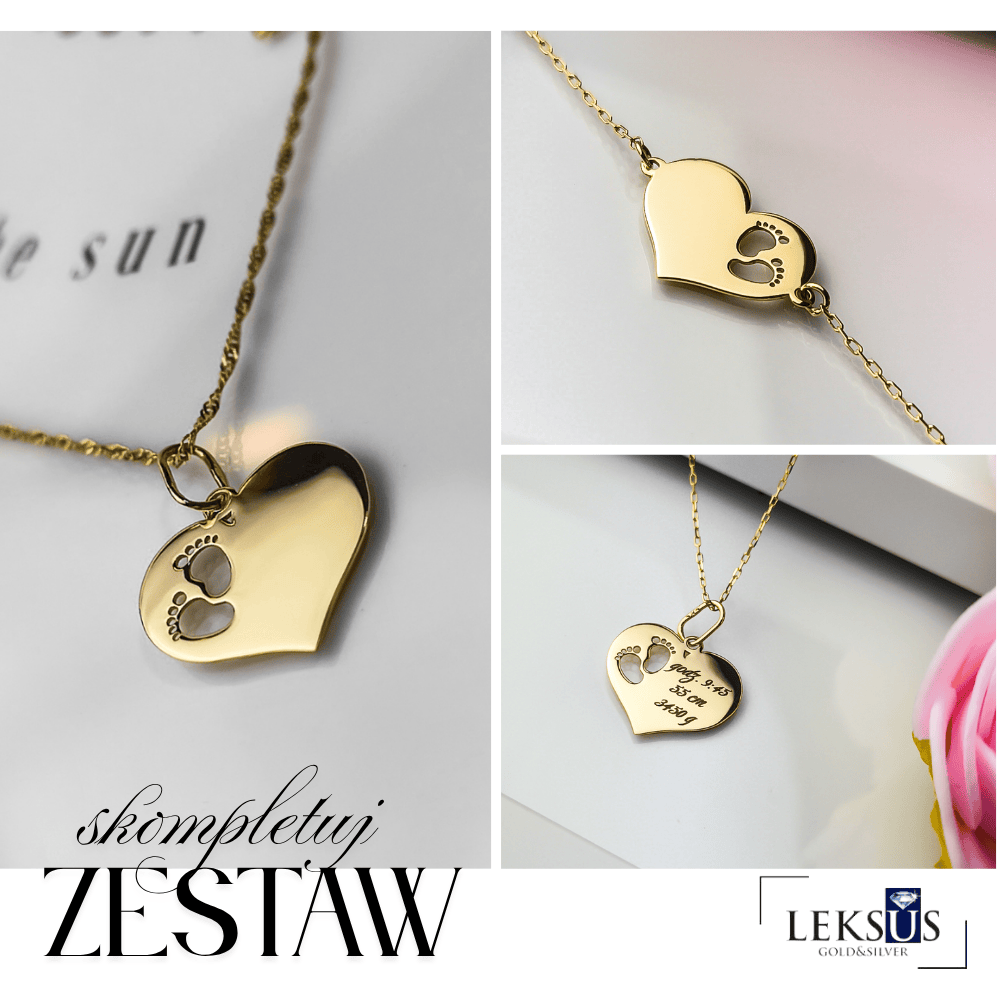 Złota zawieszka idealna do noszenia każdego dnia. To doskonały pomysł na prezent. Zawieszka wykonana z wysokiej jakości złota próby 585, która zachwyca precyzją detali i głęboką symboliką. Delikatna zawieszka z sercem i stópkami - idealny symbol miłości do dziecka. Wyraź swoje uczucia tym pięknym i subtelnym akcentem.