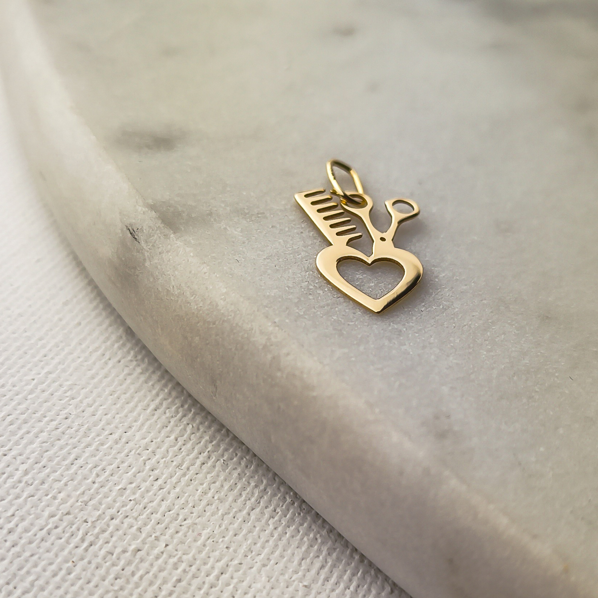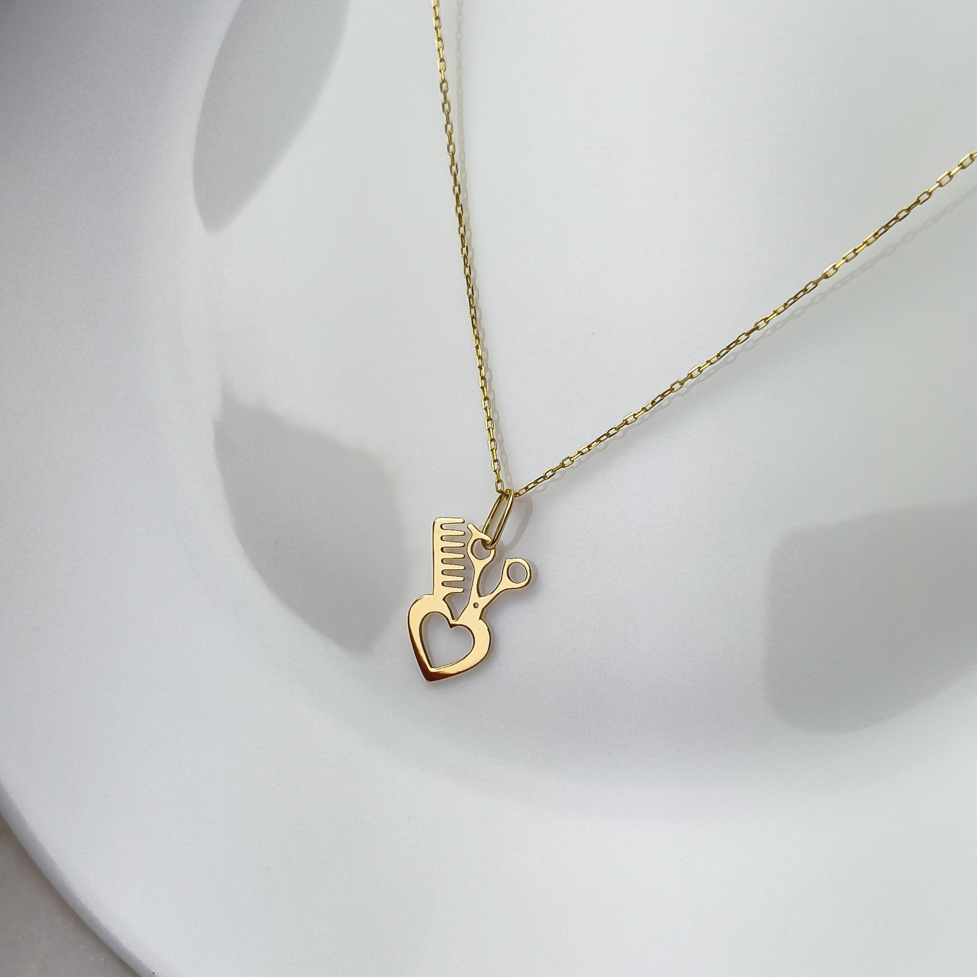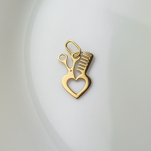 Złota Zawieszka Fryzjerska z Sercem – Z miłości do Pięknych Włosów