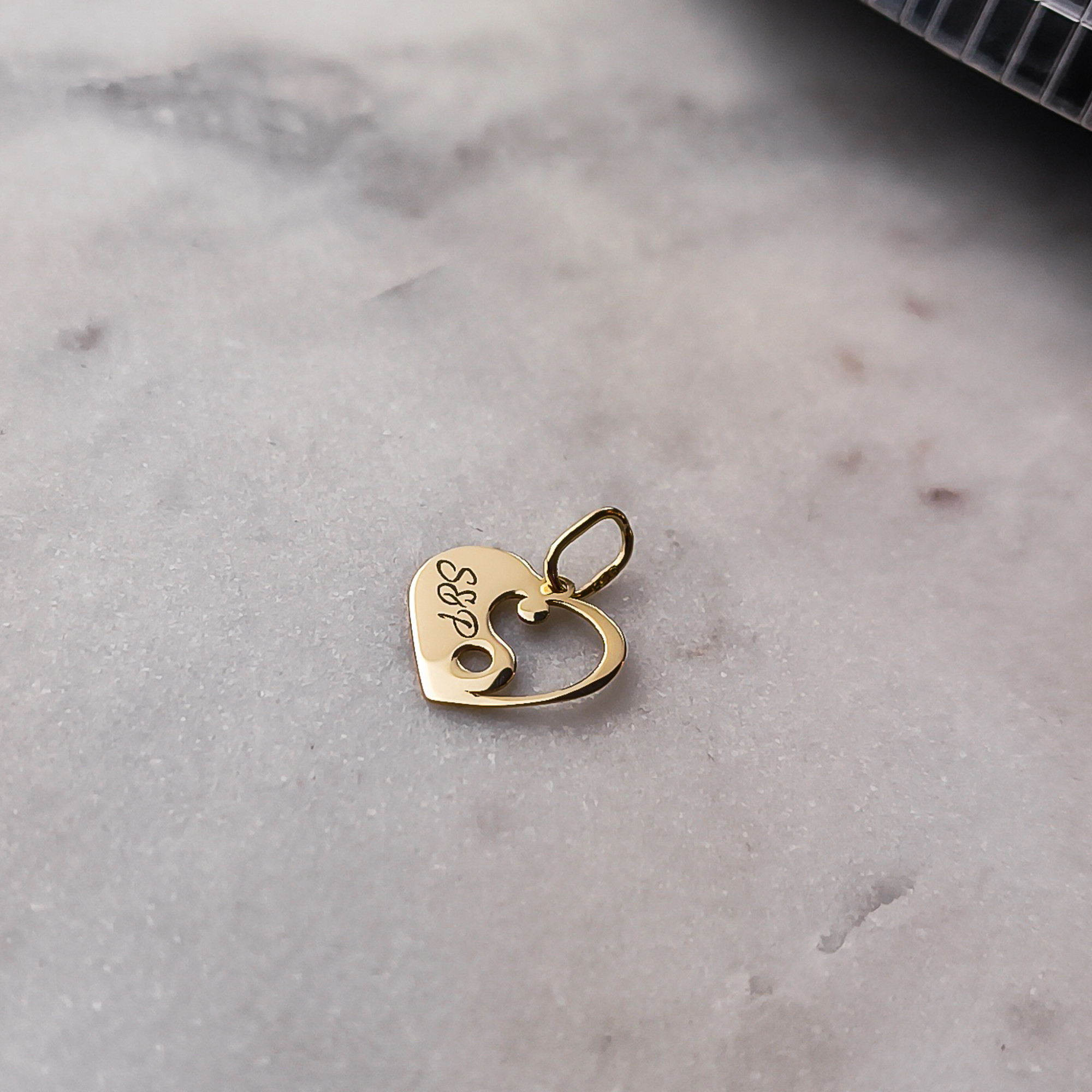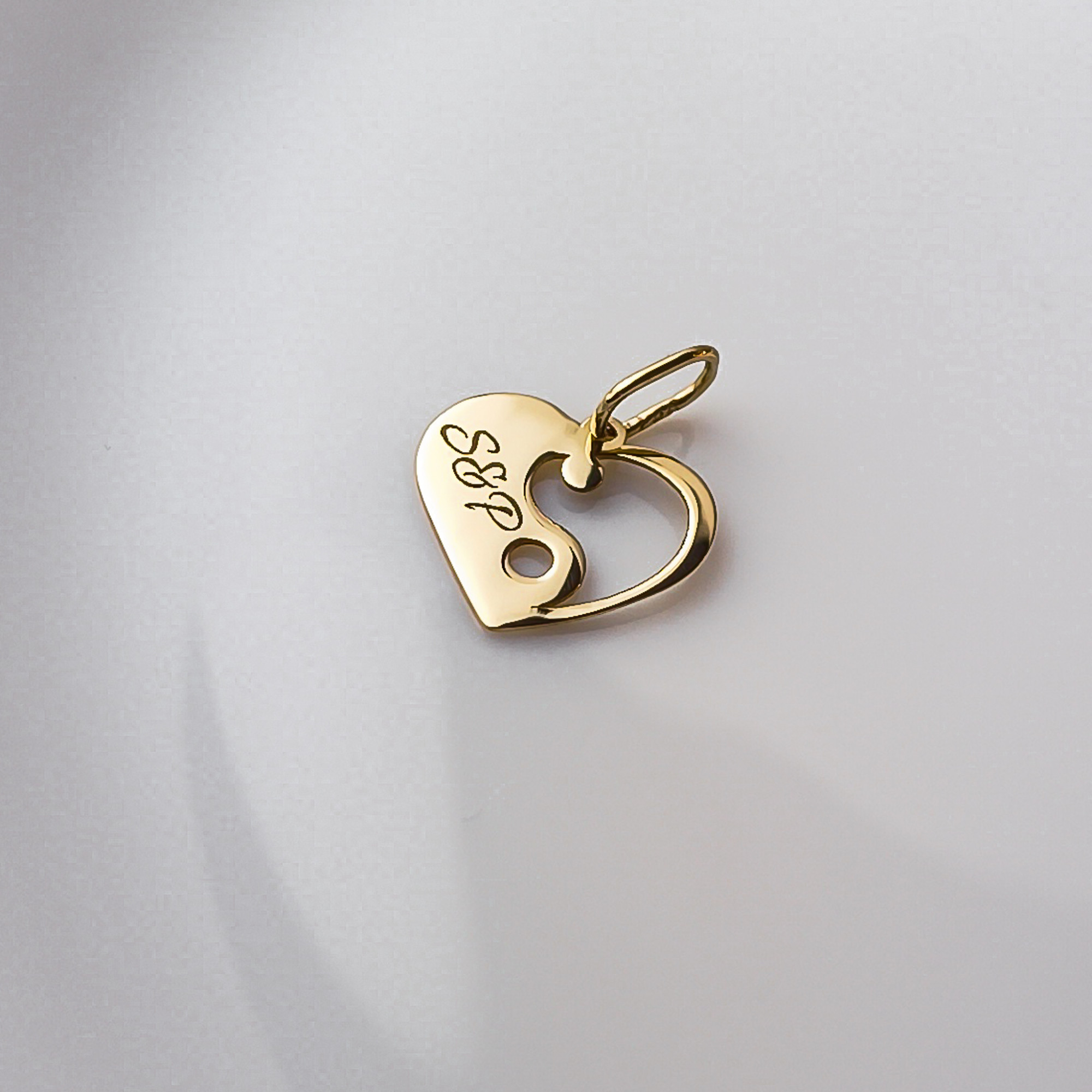 Wykonana z najwyższej jakości złota próby 585, zawieszka posiada pięknie wyprofilowany kształt, w którym jedna część serca jest gładko polerowana, a druga ażurowa, tworząc minimalistyczny i głęboki w przekazie wzór.
