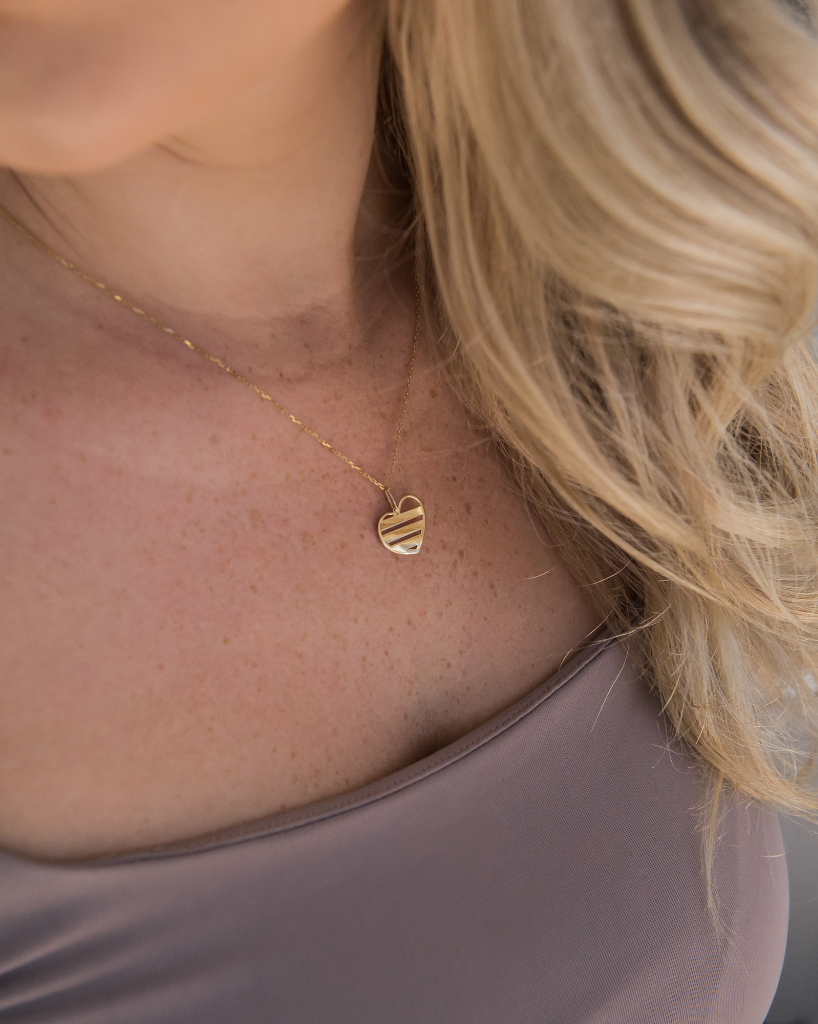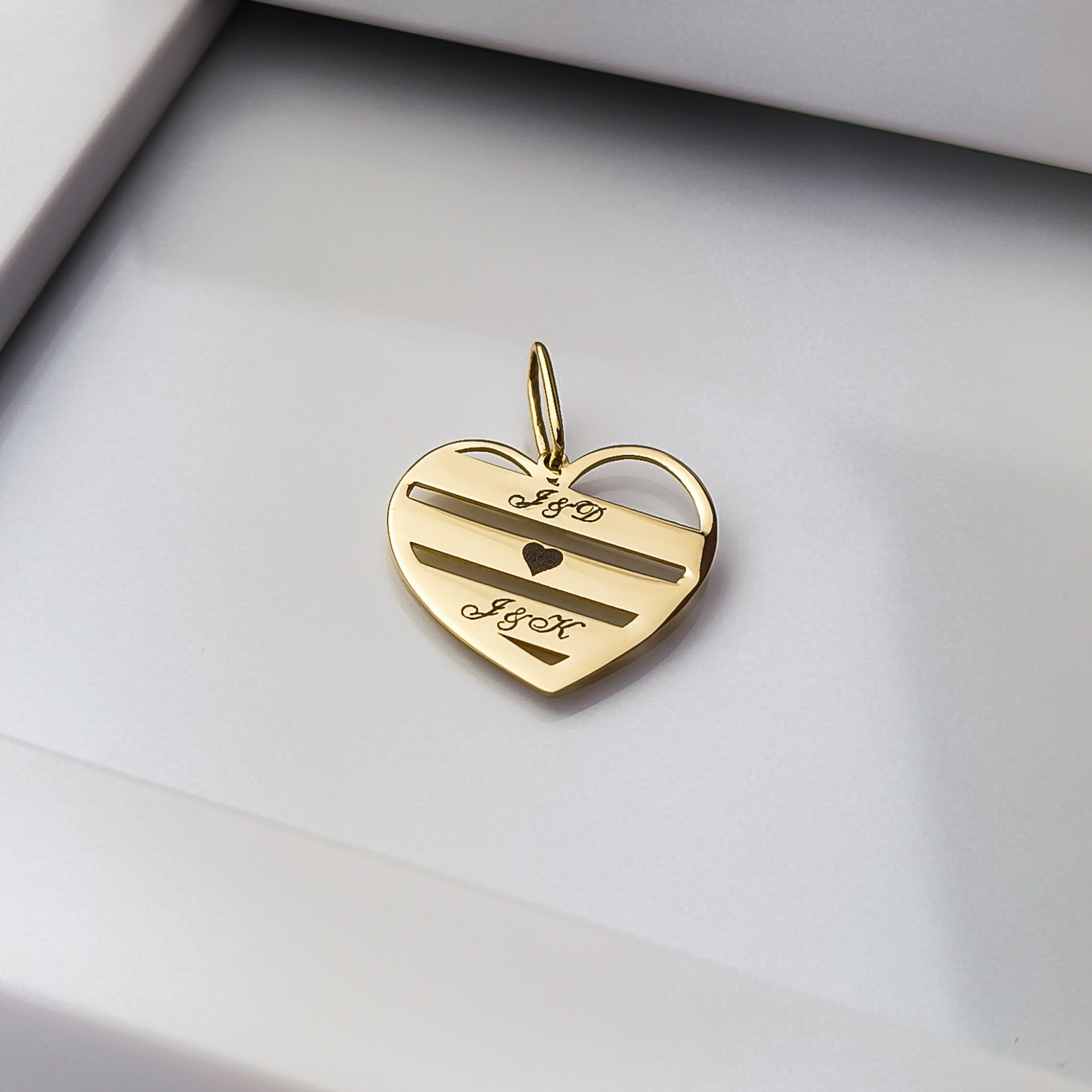 Odkryj nowoczesne oblicze miłości z naszą złotą zawieszką. Wykonana z lśniącego złota próby 585, ta unikatowa zawieszka przedstawia klasyczny symbol serca, wzbogacony o intrygujące, geometryczne wycięcia w formie ukośnych pasów. To idealne połączenie ponadczasowej symboliki z odważnym, współczesnym designem.