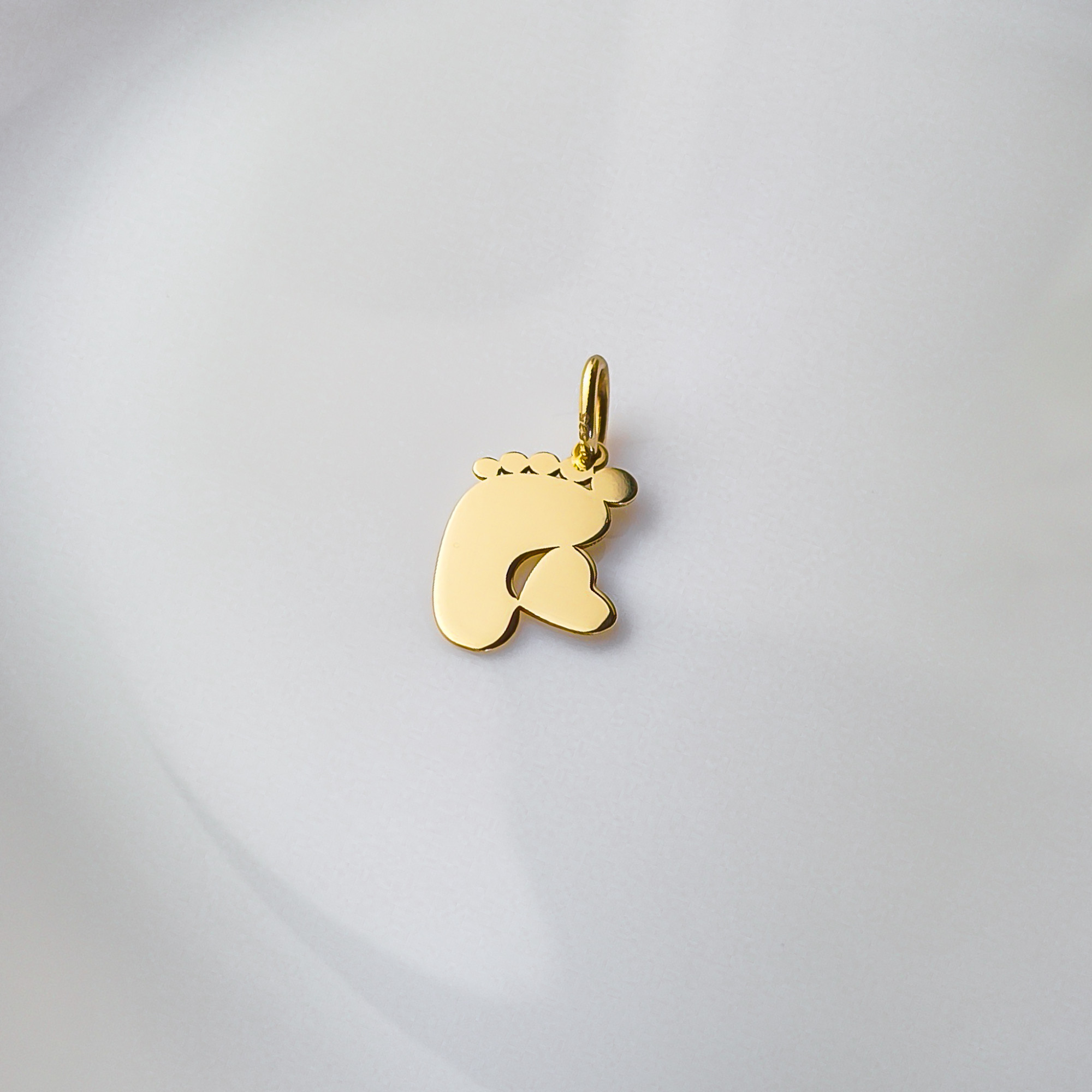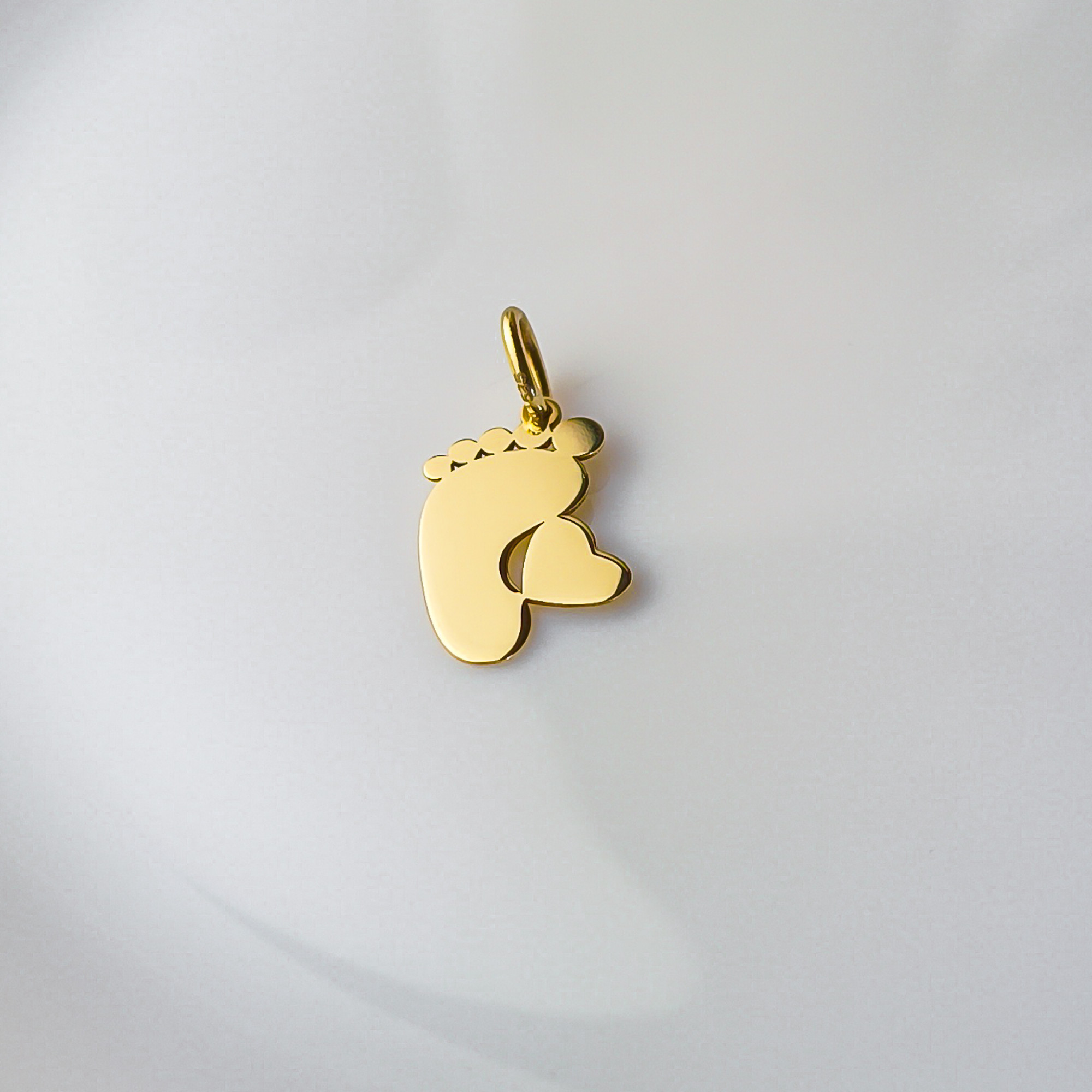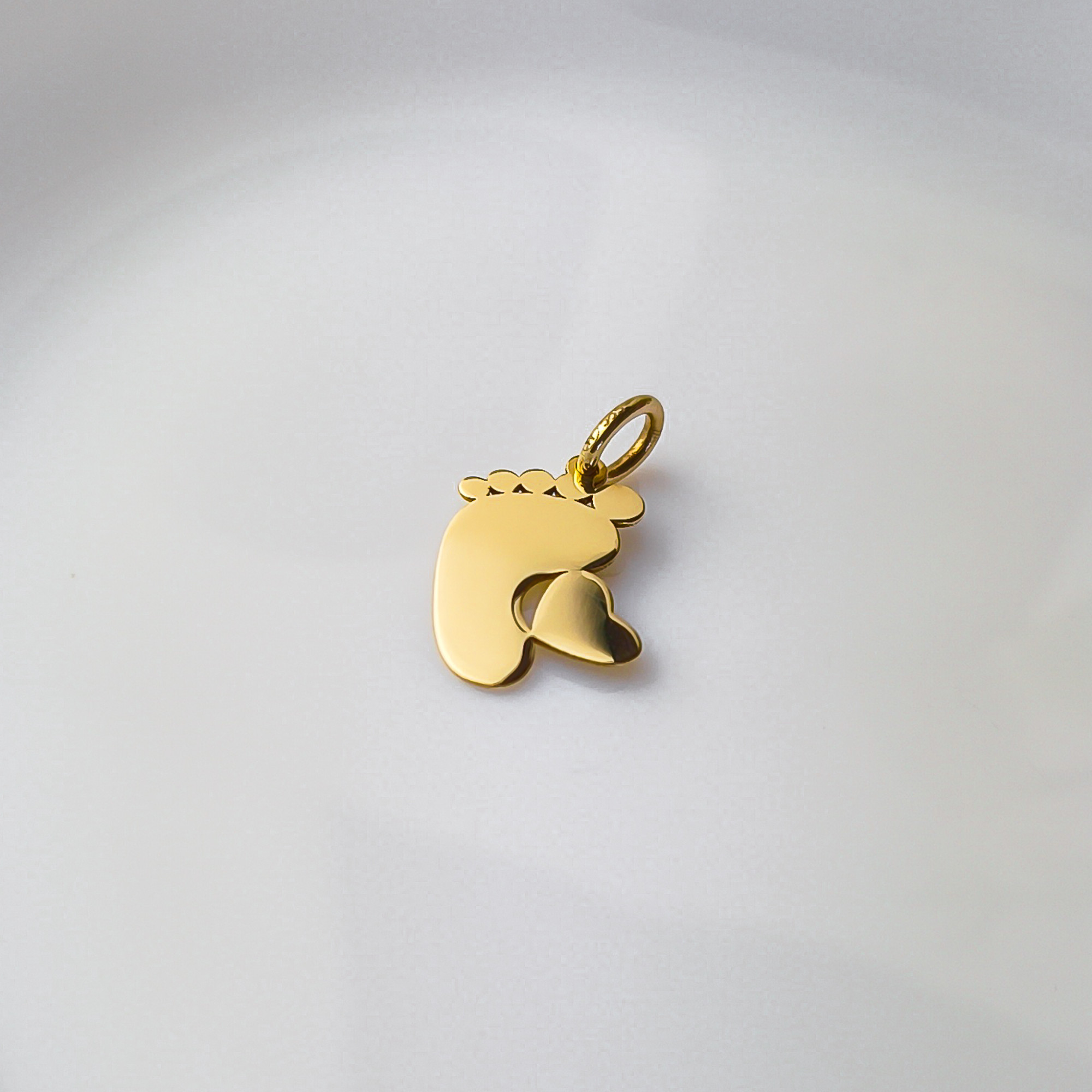 Urocza zawieszka wykonana z wysokiej jakości złota, przedstawiająca delikatną stópkę dziecka z subtelnym akcentem w postaci serduszka. To wyjątkowy symbol miłości, troski i najpiękniejszych chwil związanych z narodzinami dziecka.