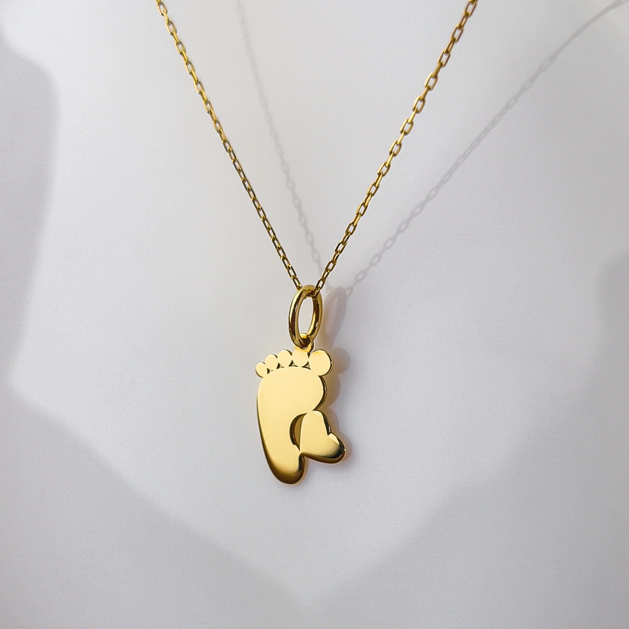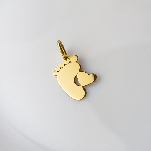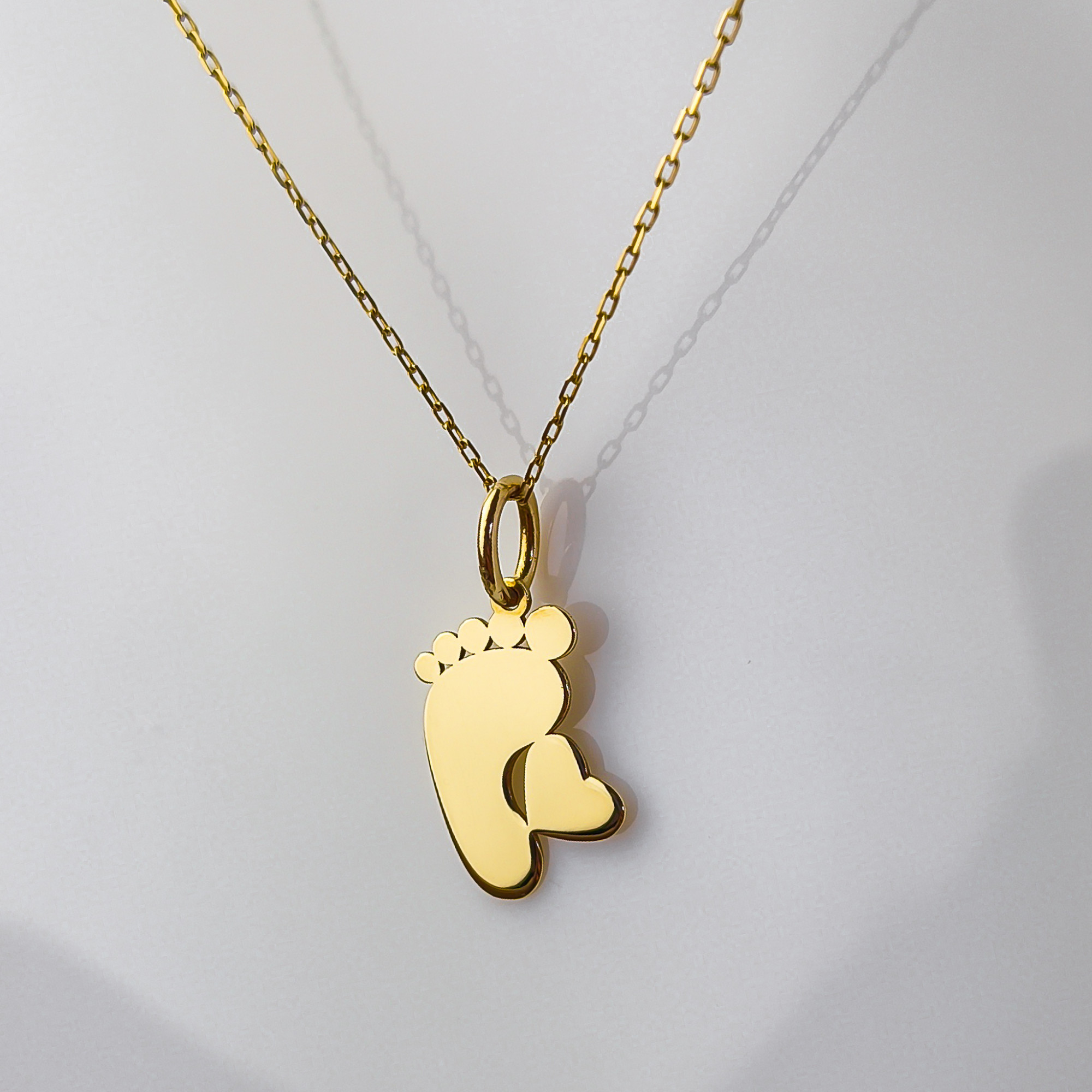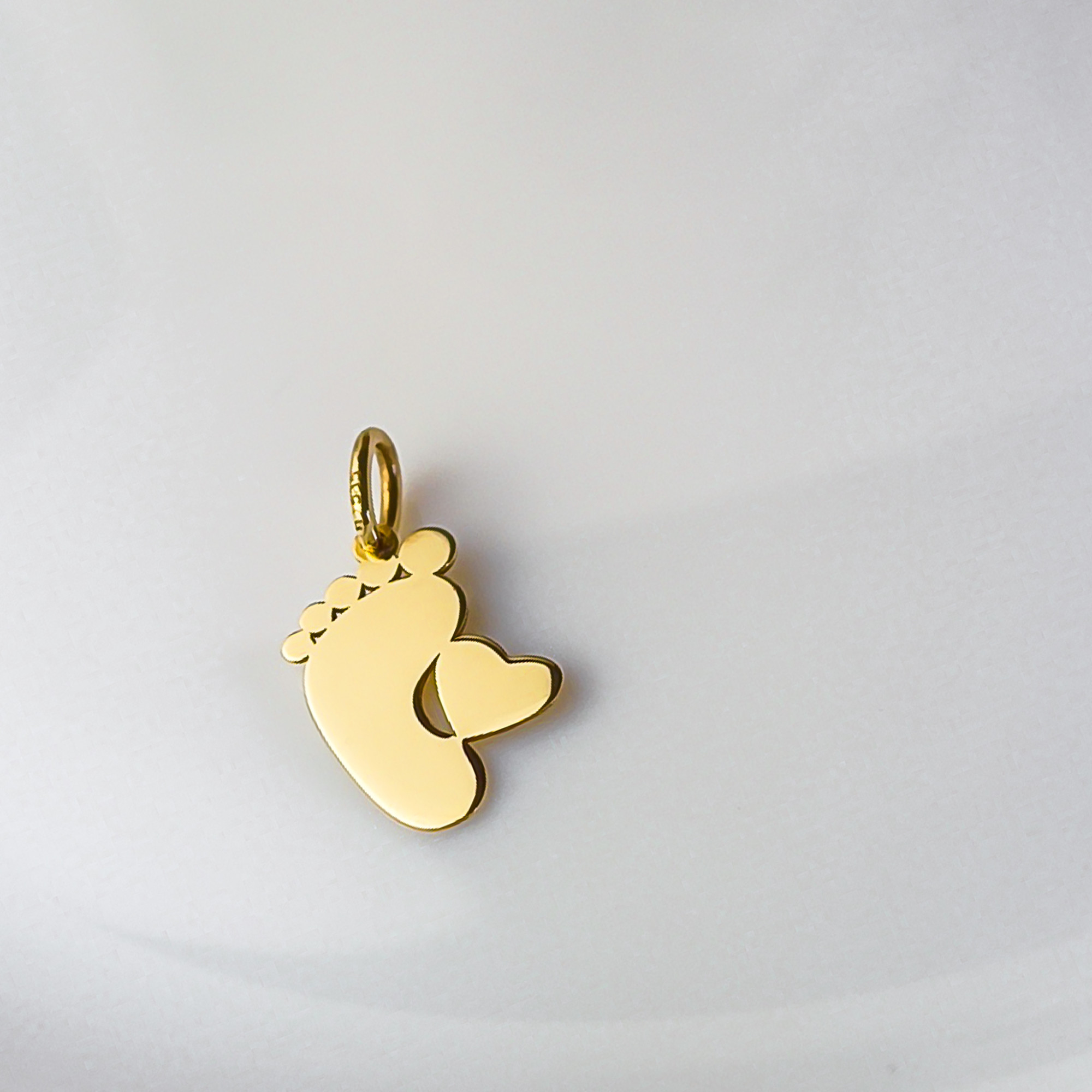 Urocza zawieszka wykonana z wysokiej jakości złota, przedstawiająca delikatną stópkę dziecka z subtelnym akcentem w postaci serduszka. To wyjątkowy symbol miłości, troski i najpiękniejszych chwil związanych z narodzinami dziecka.