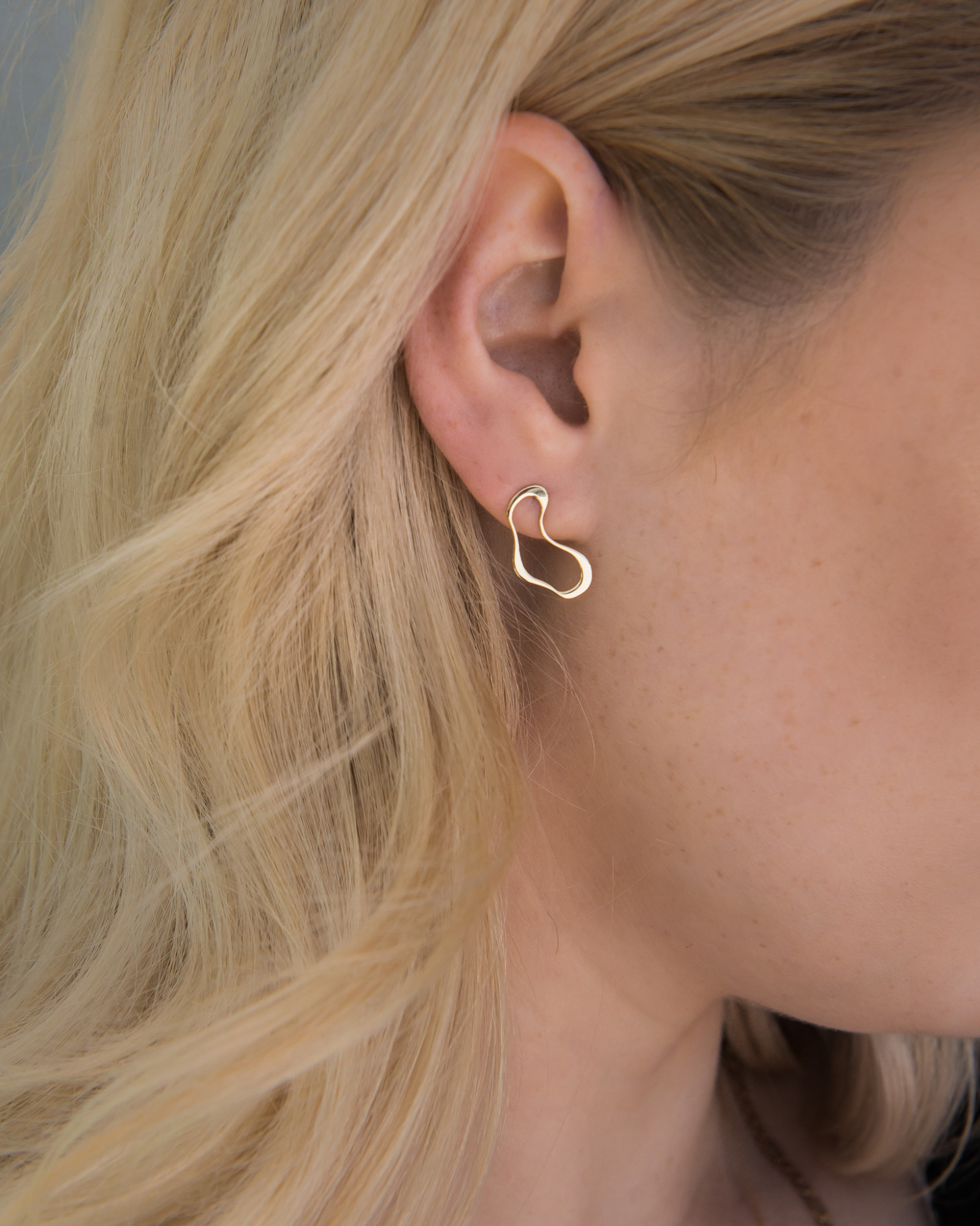 Odkryj niezwykłą harmonię i dynamikę z naszymi złotymi kolczykami. Wykonane z najwyższej jakości lśniącego złota próby 585, te unikalne kolczyki urzekają swoim nieregularnym, organicznym kształtem, który swobodnie układa się na uchu. Ich design inspirowany jest naturą, przypominając krople wody, delikatnie falujące linie czy abstrakcyjne formy, które harmonijnie łączą się z anatomią ucha.