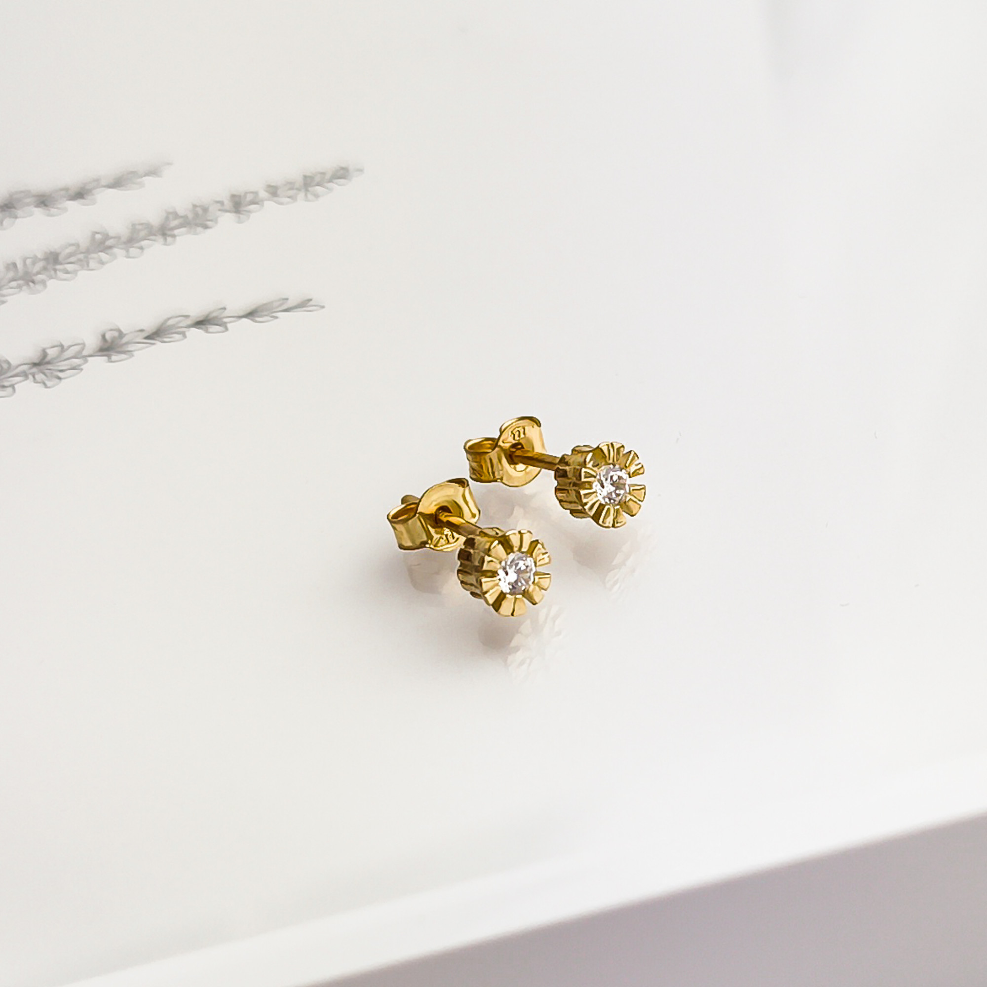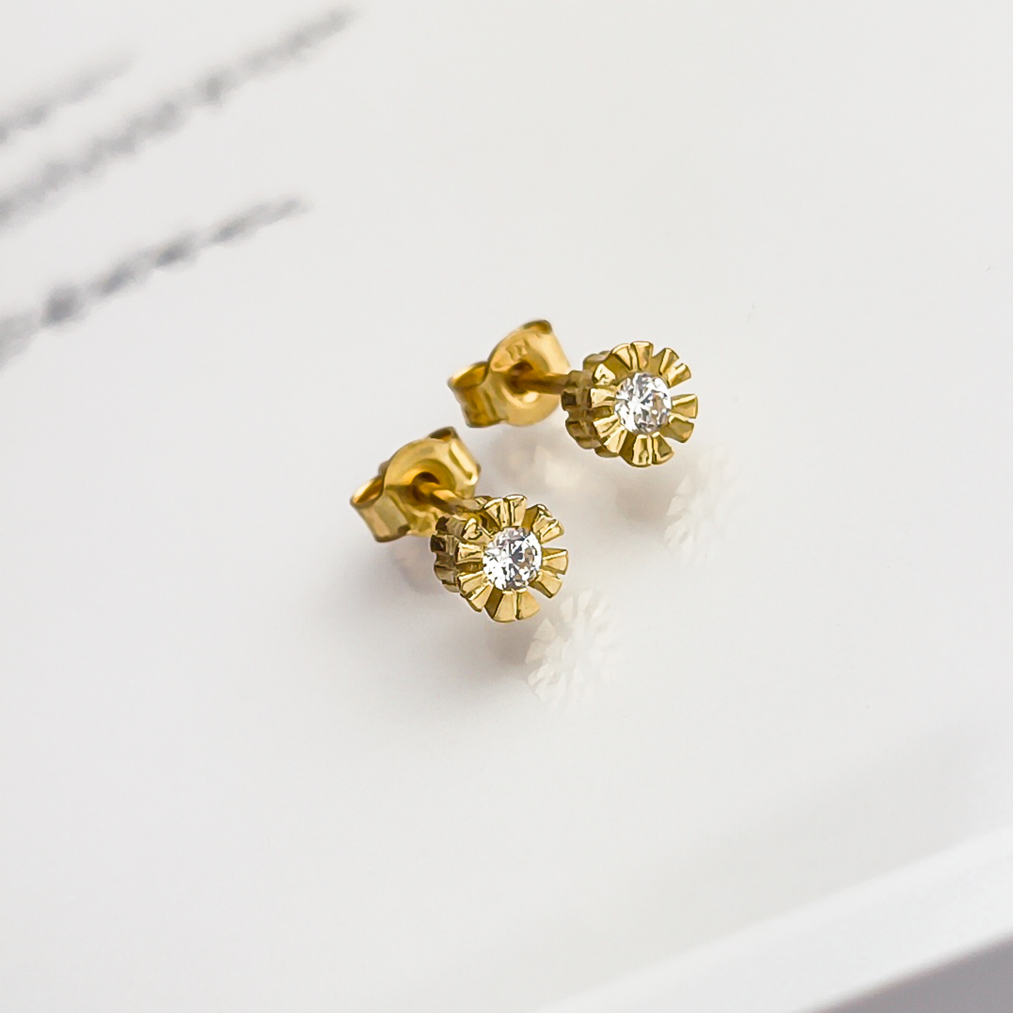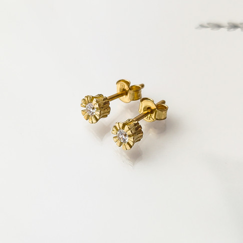 Subtelne i nadzwyczaj kobiece złote kolczyki, z motywem kwiatka ozdobione białą cyrkonią. Wspaniały wygląd i precyzja wykonania sprawiają, iż są one idealne na każdą okazję. Cudownie podkreślają naturalne piękno każdej kobiety. Nasze produkty pakujemy w ozdobne pudełka firmowe. Dodatkowo mamy możliwość wykonania graweru na blaszce i umieszczeniu jej w pudełku. Skorzystaj z naszych wzorów lub stwórz własny oryginalny tekst graweru.
