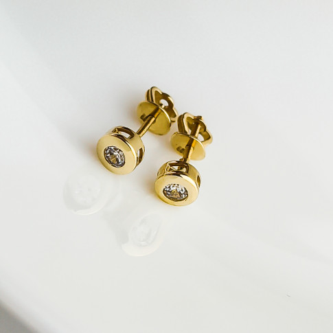 Subtelne złote kolczyki z białą cyrkonią, które wykonane zostały ze złota próby 585. Ich delikatny wzór przypadł do gustu wielu wielbicielkom klasycznych kształtów, dodając je do stylizacji podkreślimy kobiecą urodę. Kolczyki zapakowane w ozdobne pudełeczko będą świetnym prezentem dla bliskiej osoby. Dodatkowo mamy możliwość wykonania graweru na blaszce i umieszczeniu jej w pudełku. Skorzystaj z naszych wzorów lub stwórz własny oryginalny tekst graweru - usługa GRATIS.
