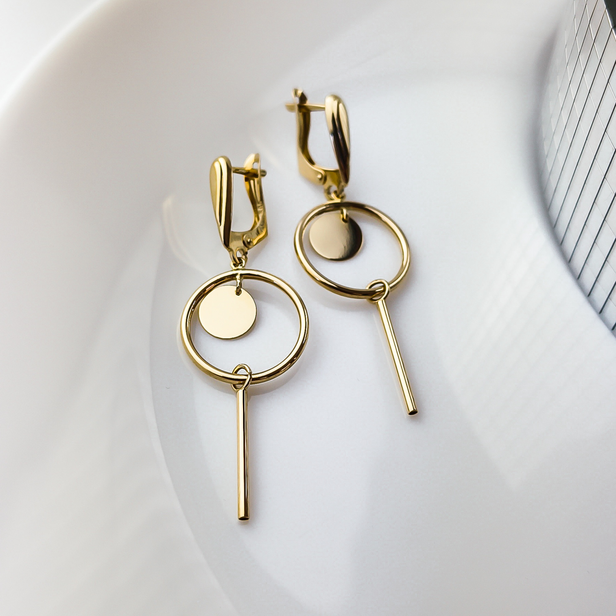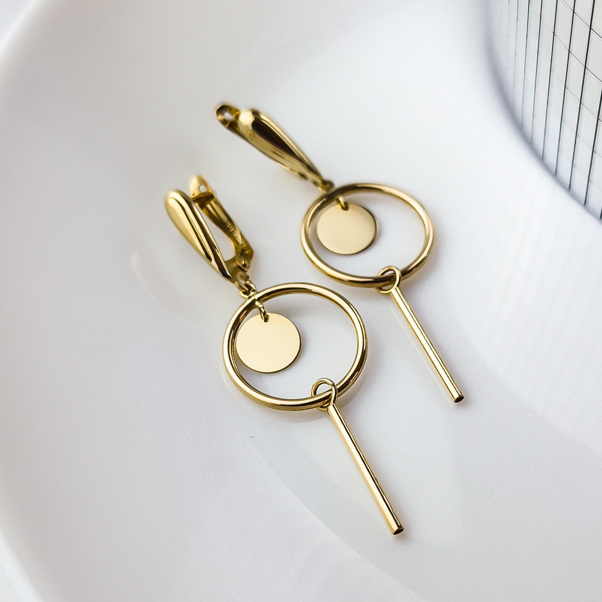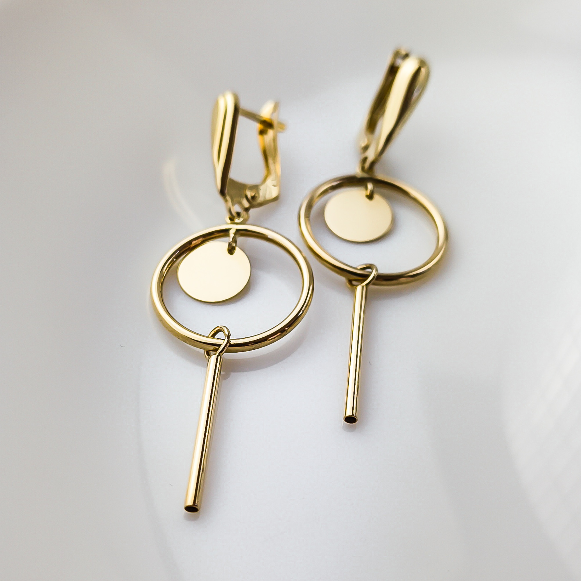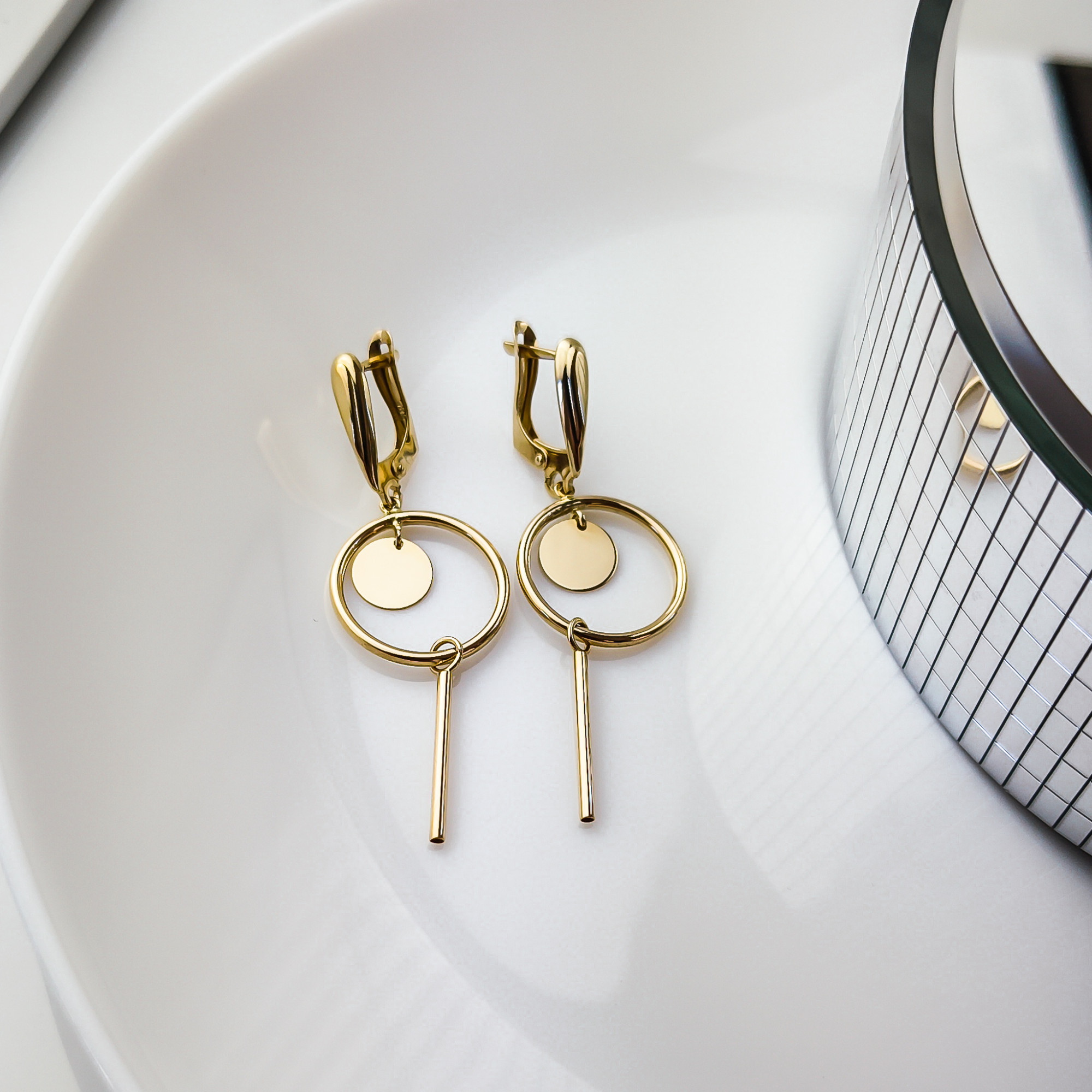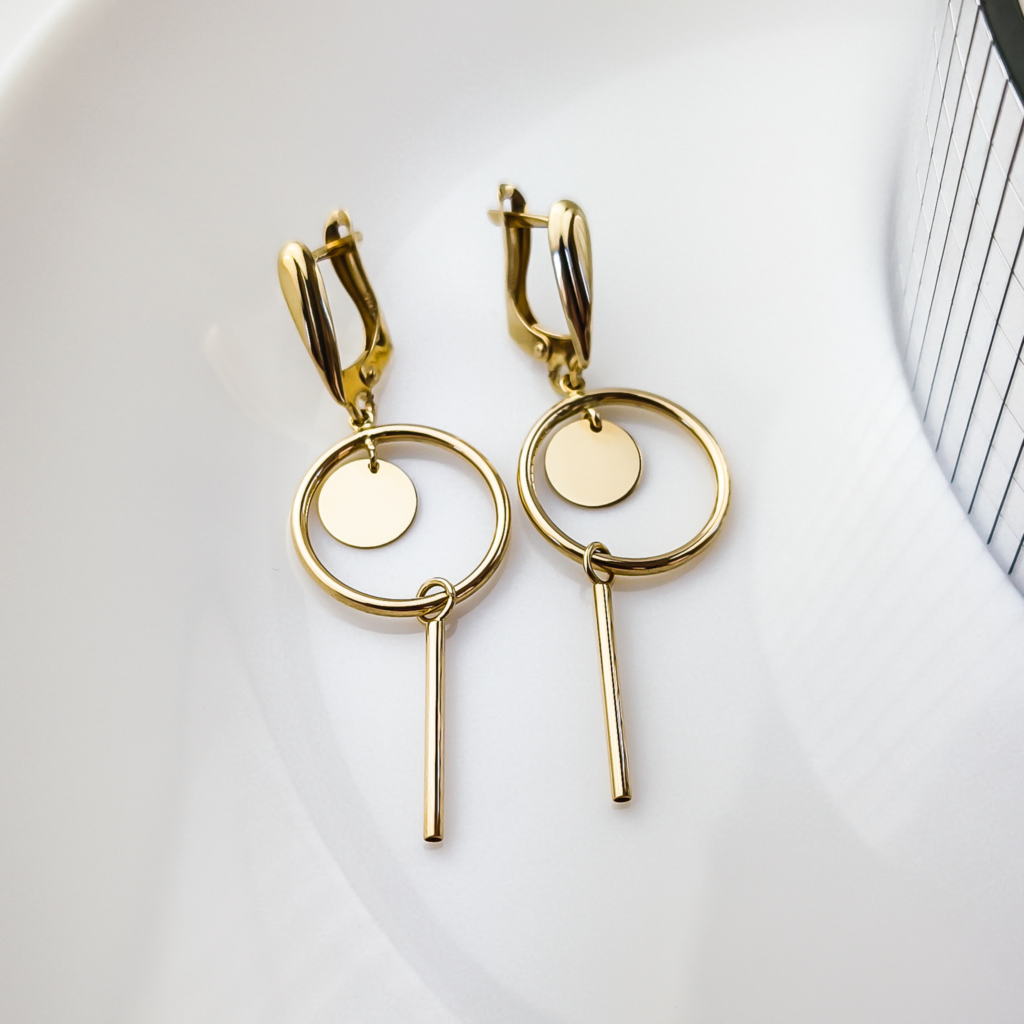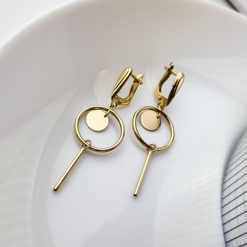 Niezwykle modne złote kolczyki na angielskim zapięciu o bardzo charakterystycznym kształcie. Kolczyki świetnie dopasowują się do stylizacji dodając szyku. Z pewnością dodadzą blasku i wyjątkowego charakteru każdej damskiej stylizacji. Świetnie nadają się do noszenia na co dzień jak i na wieczorne wyjścia. Produkt dostępny w naszej ofercie wykonany jest ze złota próby 585 - co jest potwierdzeniem wysokiej jakości i trwałości. Dodatkowo mamy możliwość wykonania graweru na blaszce i umieszczeniu jej w pudełku. Skorzystaj z naszych wzorów lub stwórz własny oryginalny tekst graweru - usługa GRATIS.