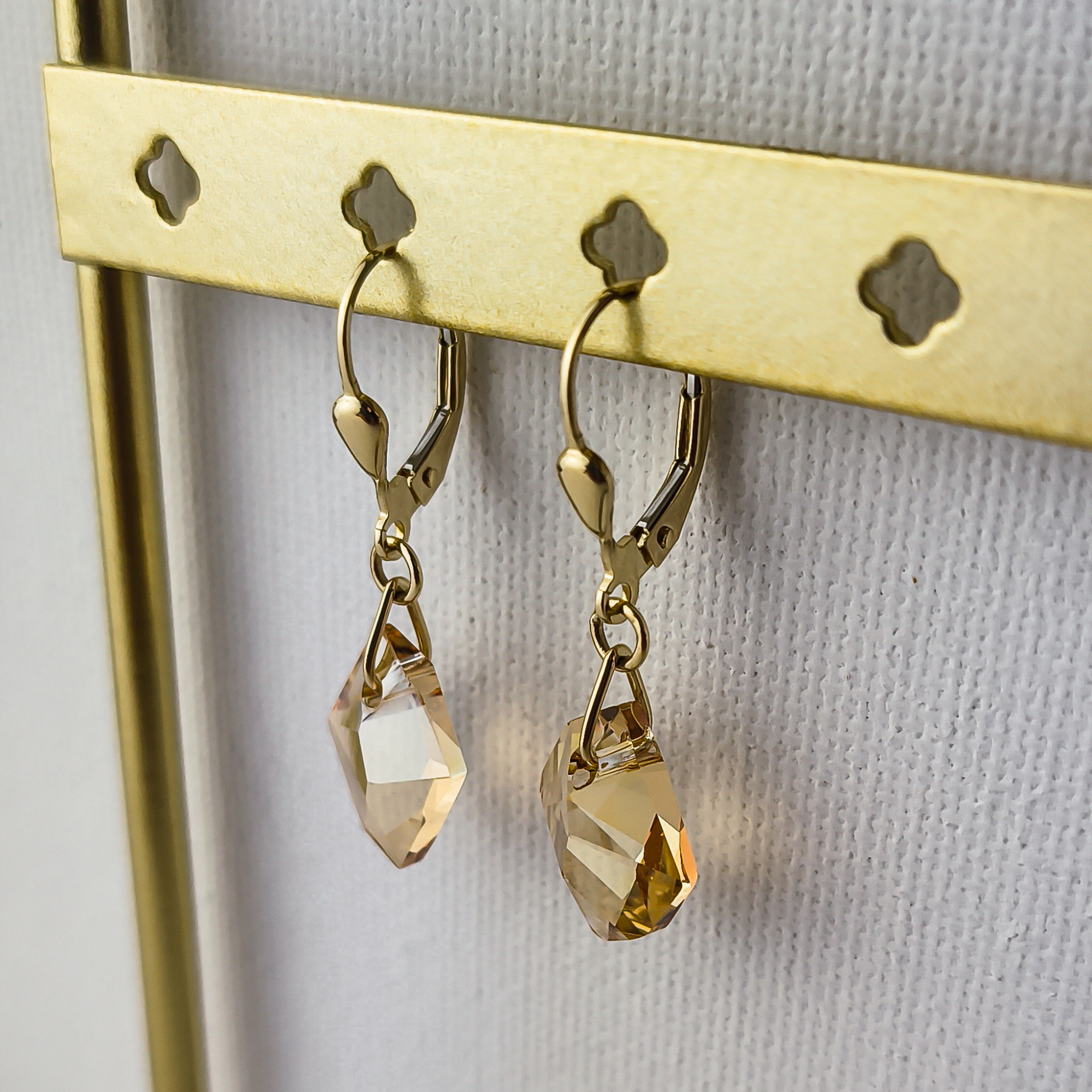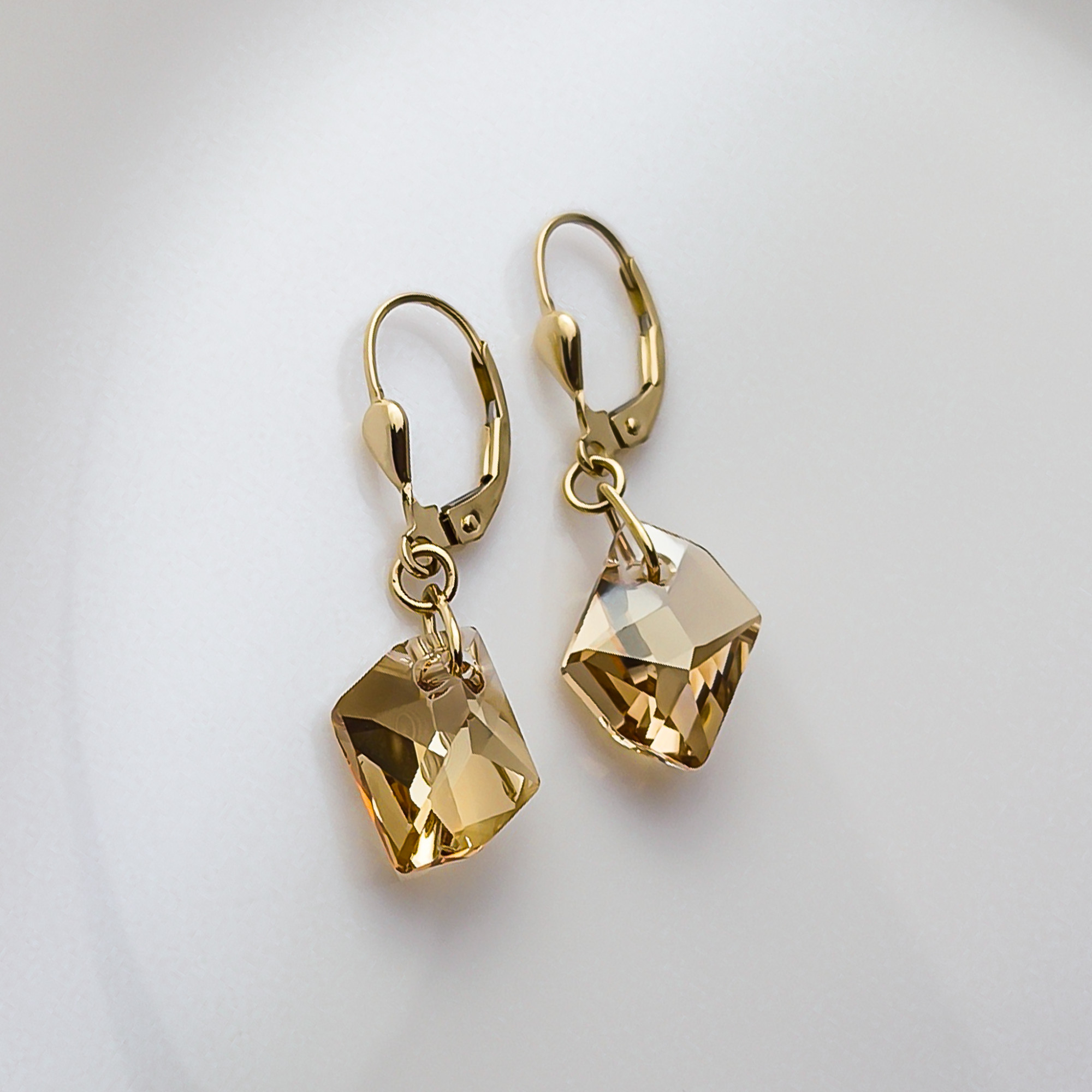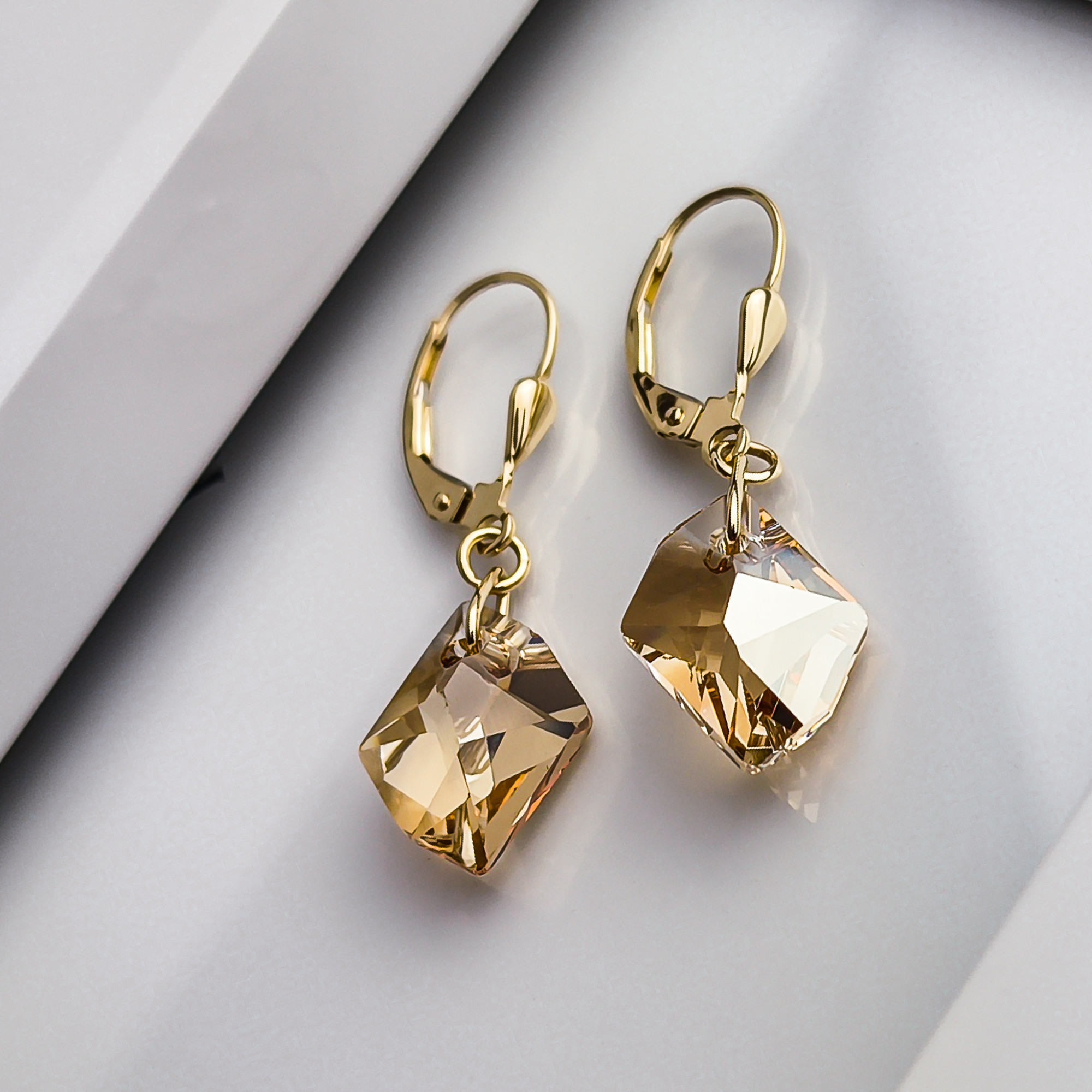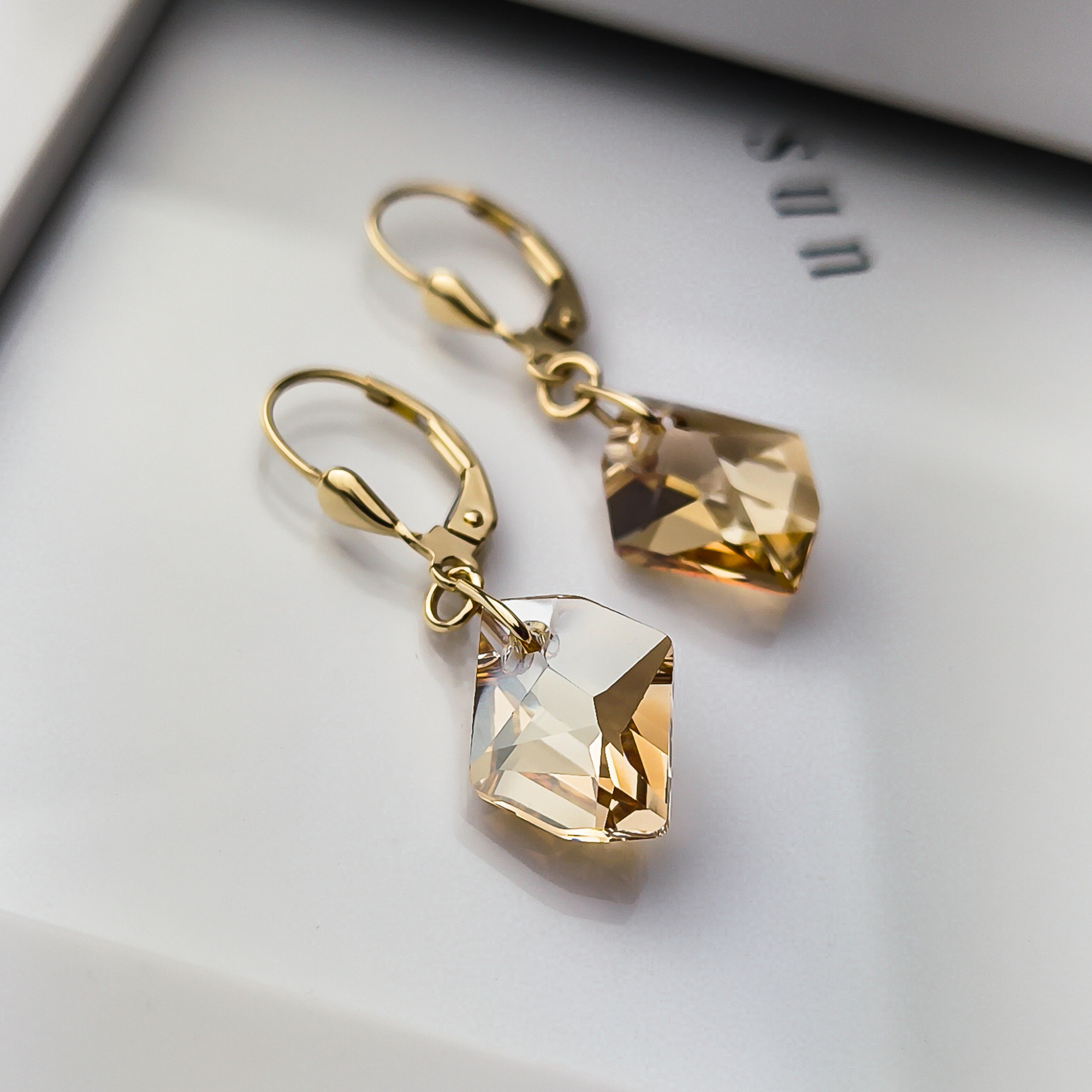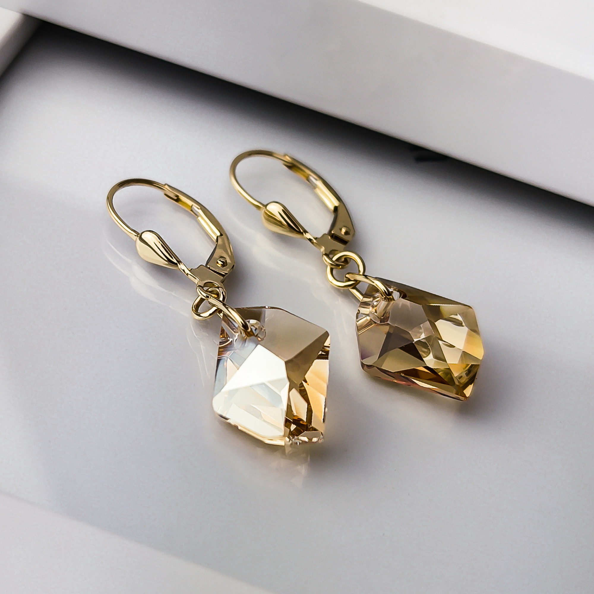 Doskonały pomysł na prezent dla bliskiej osoby. Złote kolczyki z kryształem Swarovskiego Golden Shadow wykonane ze złota o próbie 585 charakteryzują się perfekcyjnym wykończeniem z dbałością o szczegóły. Ich unikatowy styl podkreśli każdą stylizację, zarówno elegancką sukienkę założoną na wyjątkową okazję, jak i klasyczny zestaw koszuli i spodni do pracy.