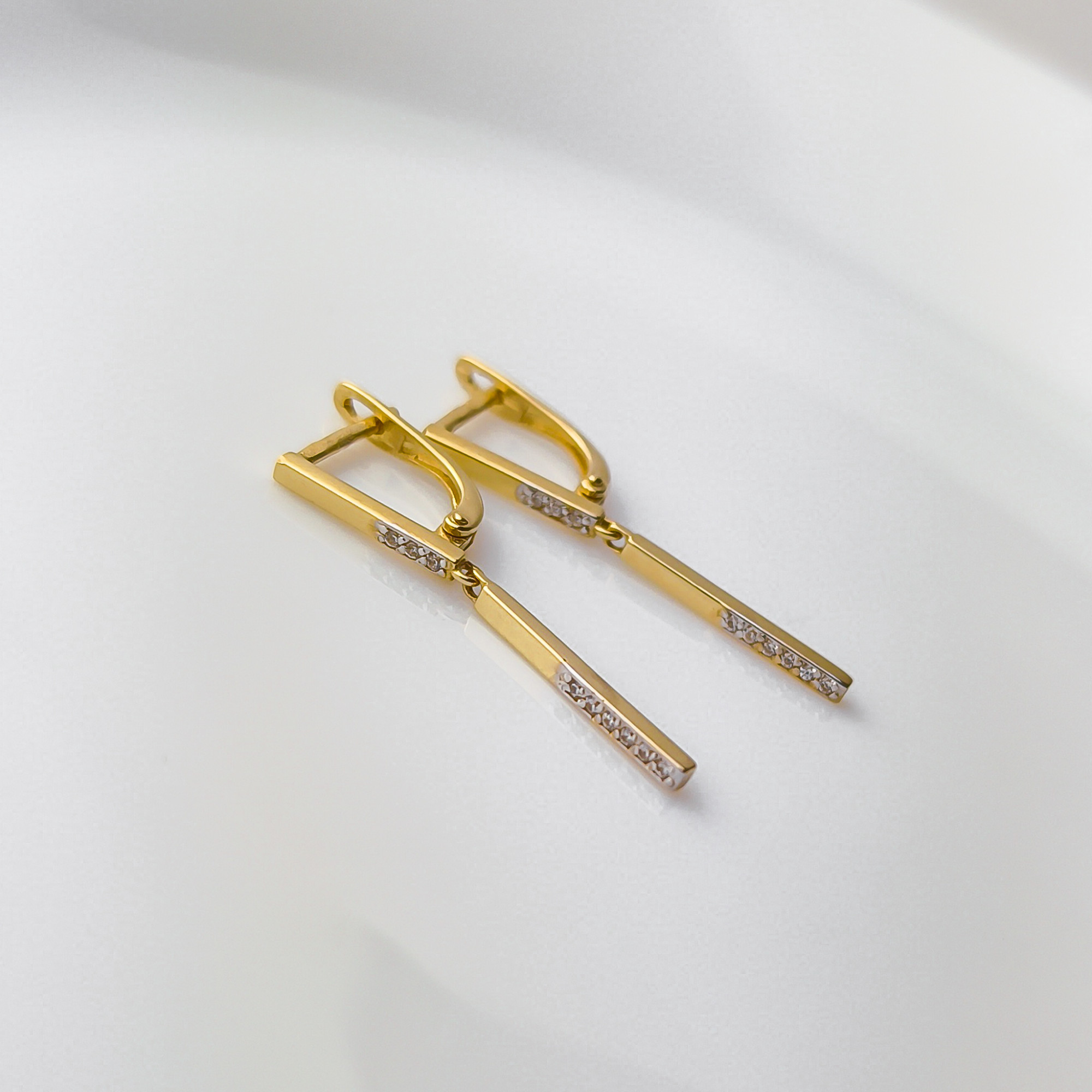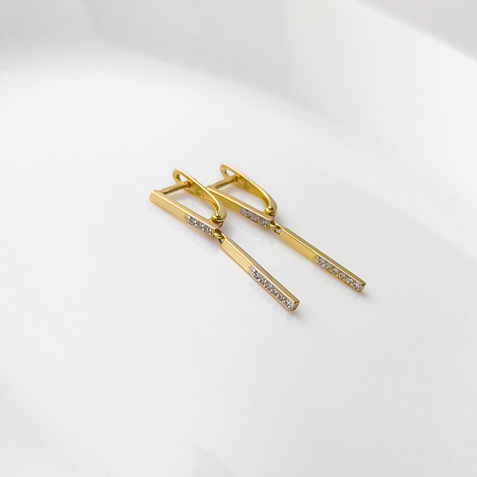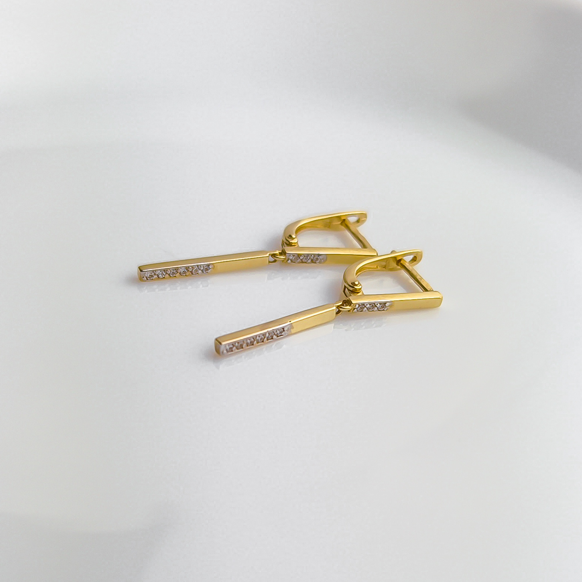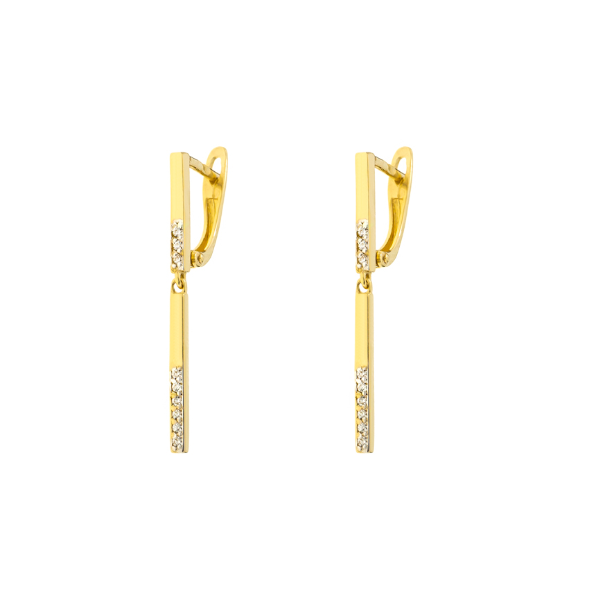 Delikatne i wyjątkowo kobiece złote kolczyki na angielskim zapięciu z wisząca pałeczką w połowie wysadzaną cyrkoniami. Z pewnością dodadzą blasku i wyjątkowego charakteru każdej damskiej stylizacji. Świetnie nadają się do noszenia na co dzień jak i na wieczorne wyjścia. Produkt dostępny w naszej ofercie wykonany jest ze złota próby 585. Biżuteria zapakowana w ozdobne pudełko będzie wspaniałym prezentem. Dodatkowo mamy możliwość wykonania graweru na blaszce i umieszczeniu jej w pudełku. Skorzystaj z naszych wzorów lub stwórz własny oryginalny tekst graweru.