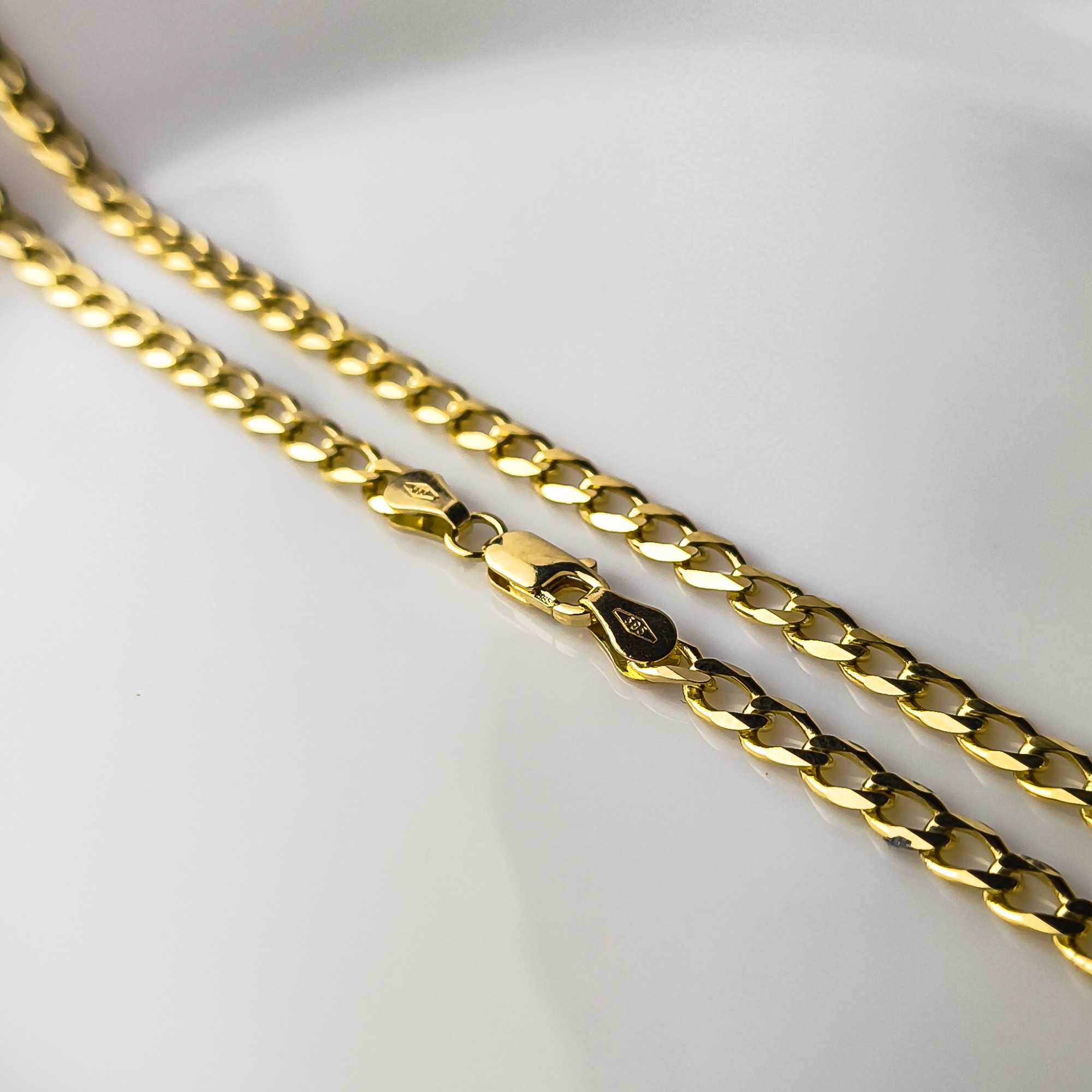 Klasyczny złoty łańcuszek o bardzo popularnym splocie jakim jest pancerka. Długość łańcuszka wynosi 45 cm, a wykonany został w całości ze złota próby 585. Swoim ponadczasowym oraz uniwersalnym splotem cieszy się bardzo dużym zainteresowaniem głównie wśród mężczyn ale i nie tylko.