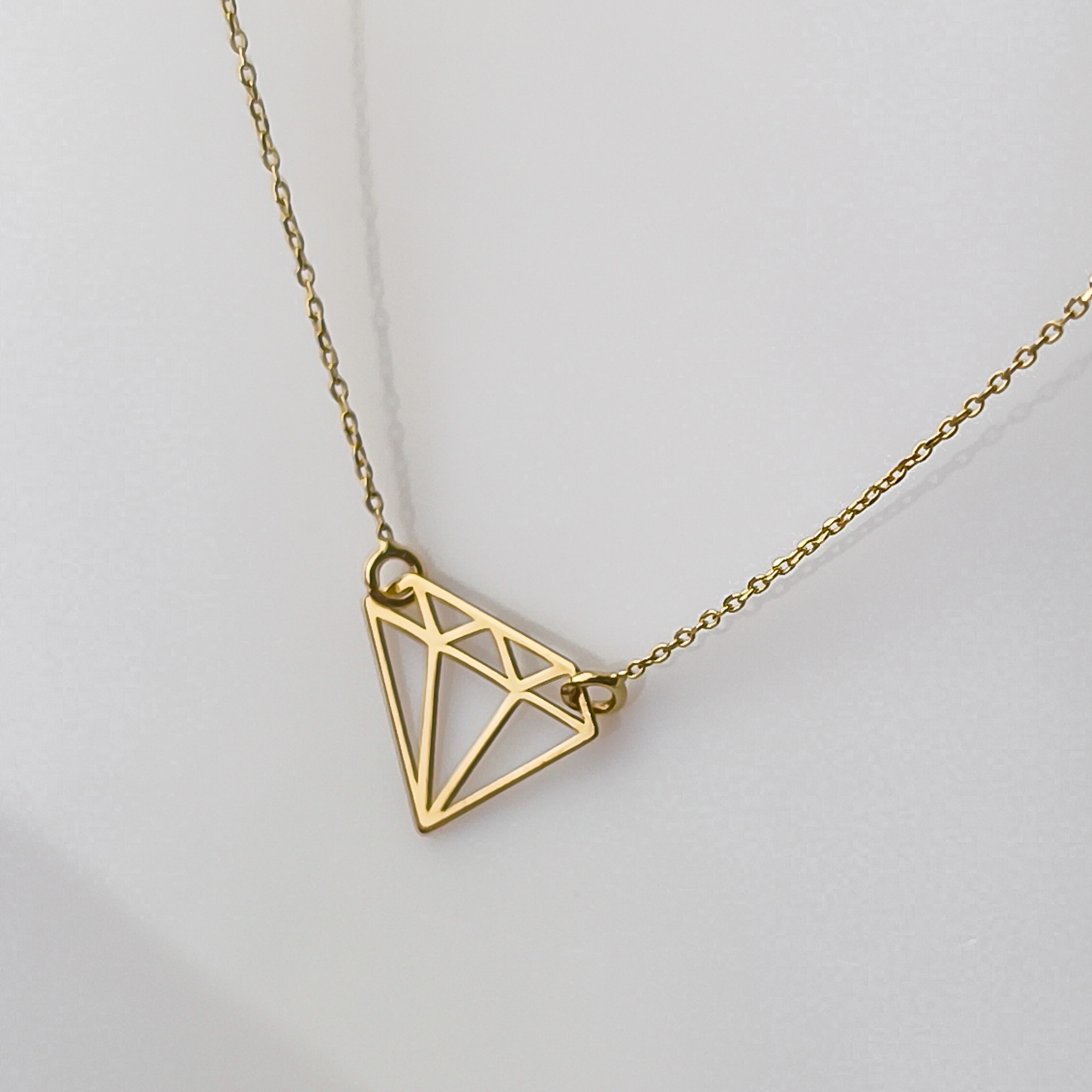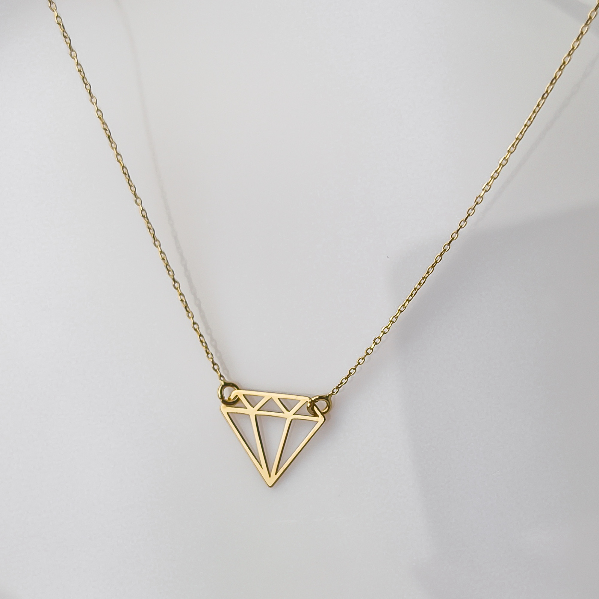 Stylowy złoty łańcuszek o klasycznym splocie typu ankier, na którym umieszczony został motyw w postaci ażurowego diamentu. Całość wykonana została ze złota próby 585, dzięki której mamy pewność towaru wysokiej jakości. Dodatkowo mamy możliwość wykonania graweru na blaszce i umieszczeniu jej w pudełku. Skorzystaj z naszych wzorów lub stwórz własny oryginalny tekst graweru - usługa GRATIS.