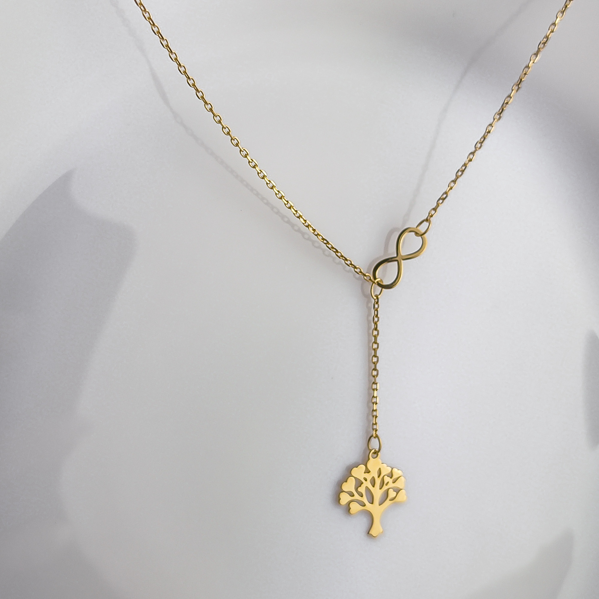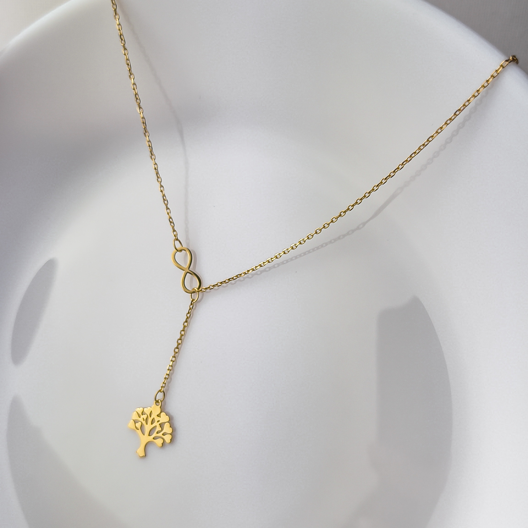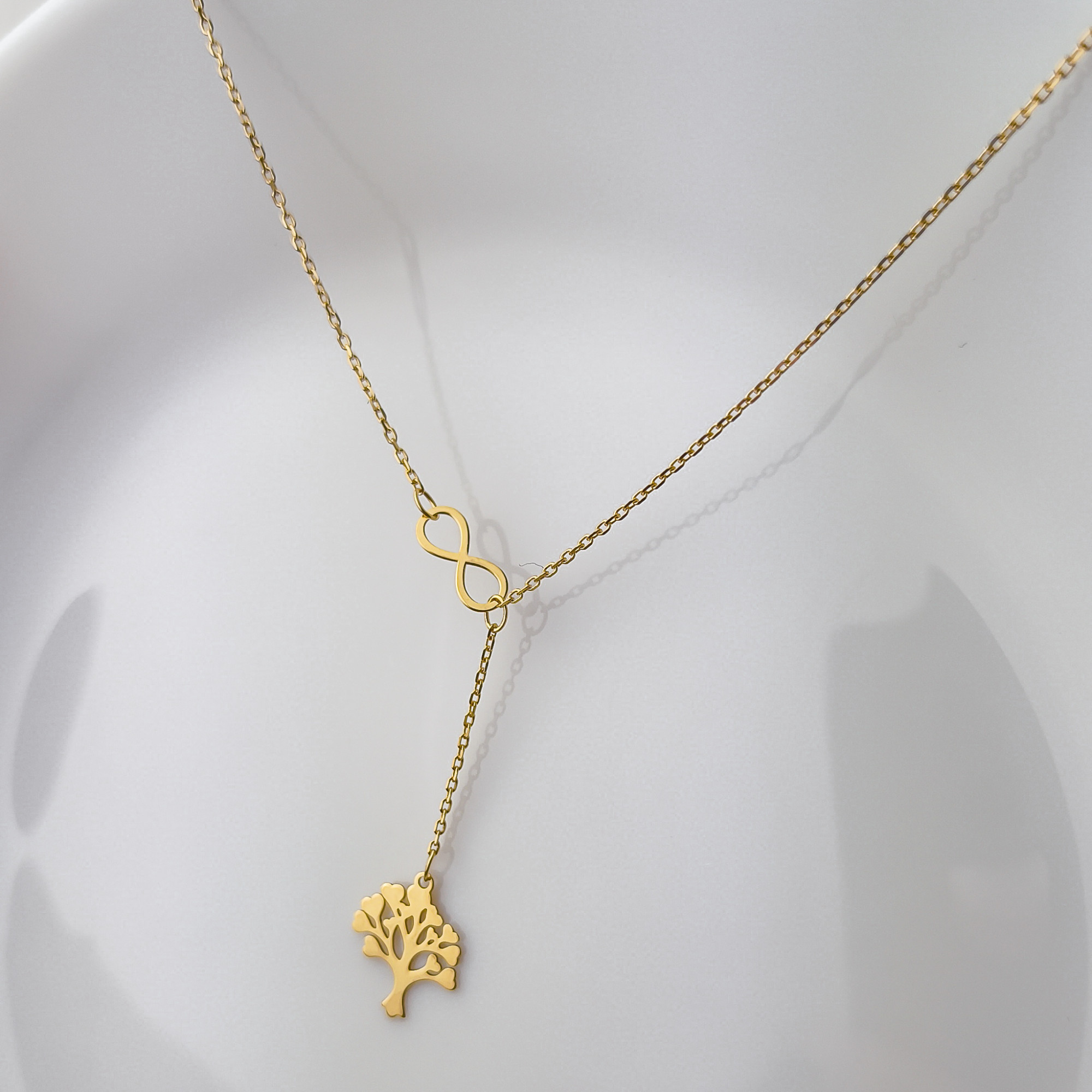 Złoty łańcuszek ze znakiem nieskończoności i drzewkiem szczęścia pr. 585
