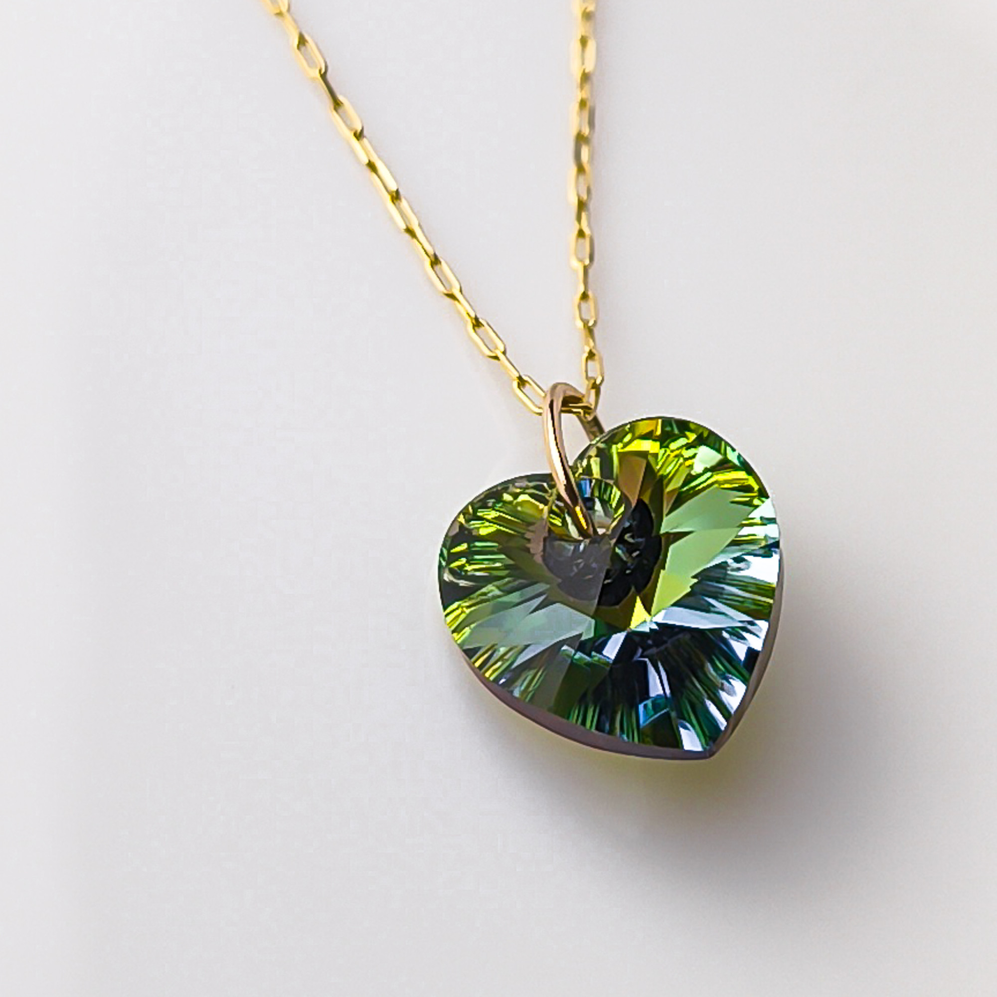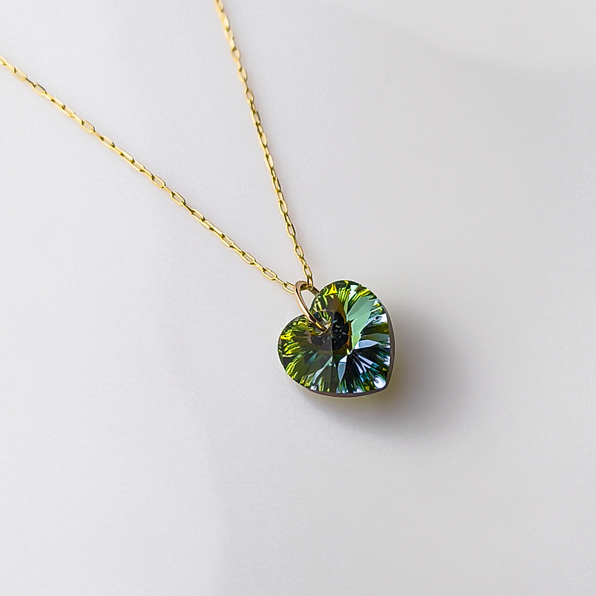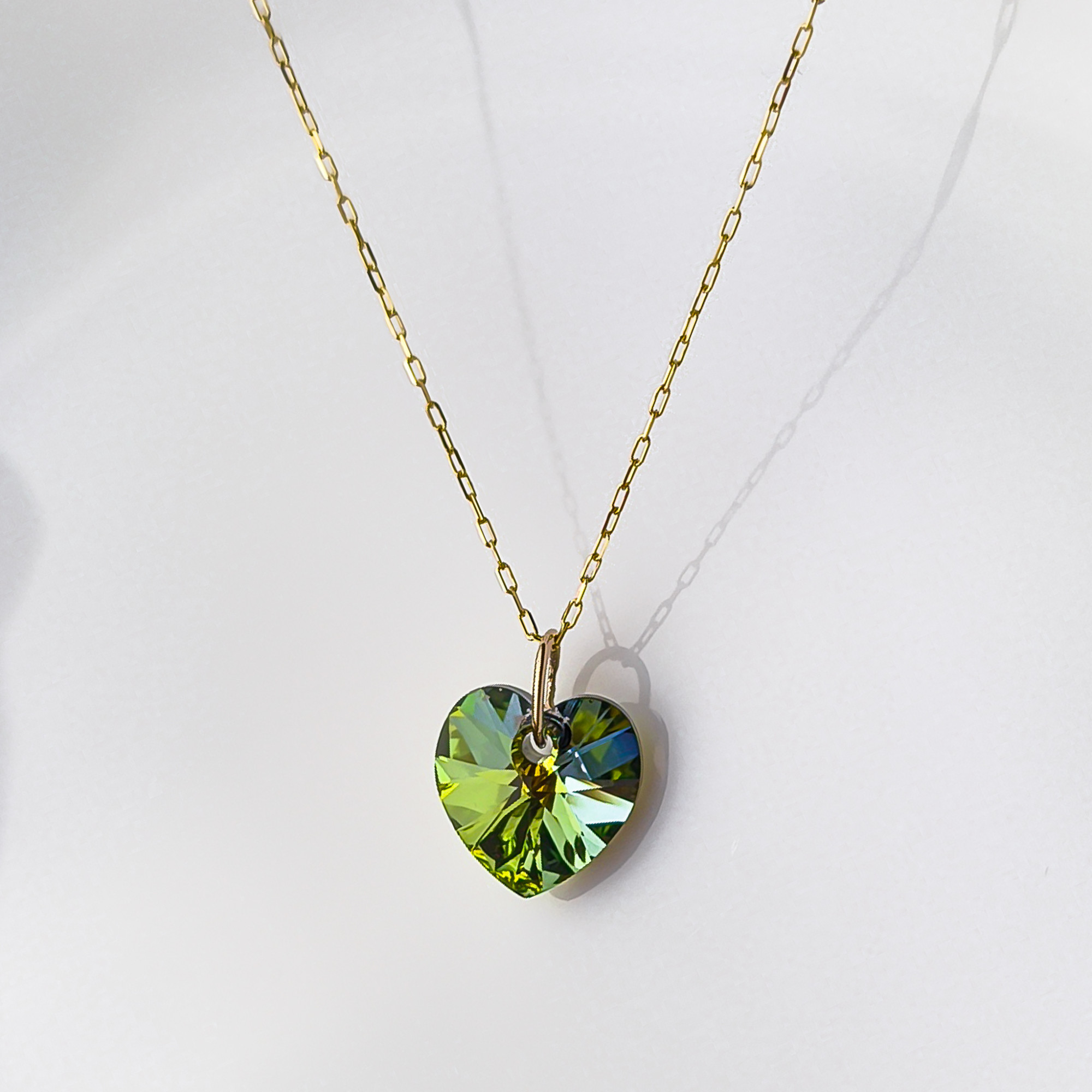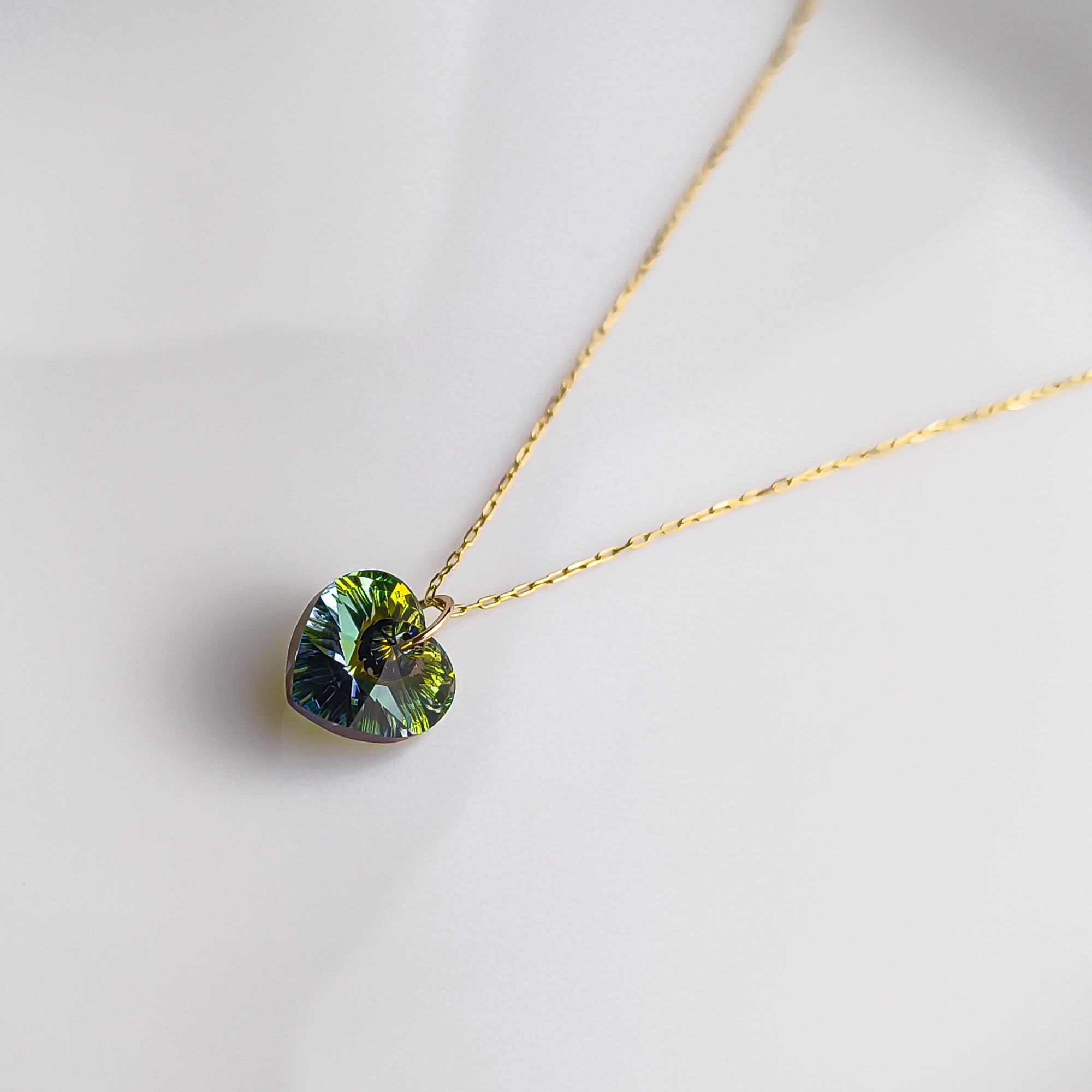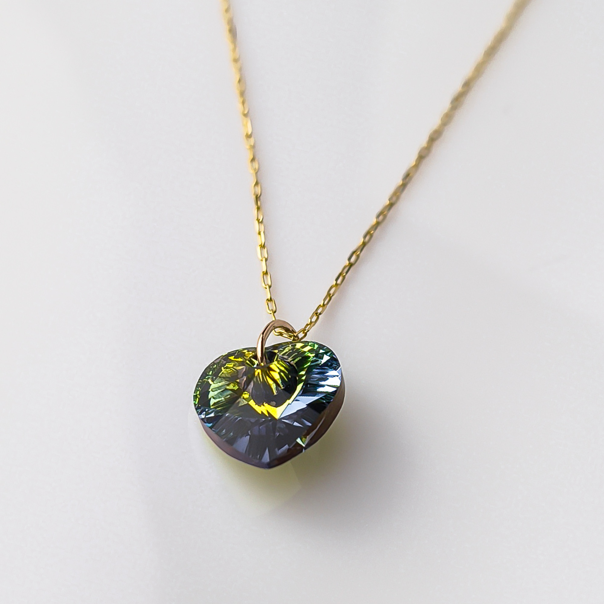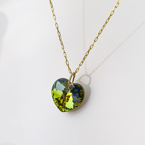Zakochaj się w blasku i kolorach Prowansji! Ten wyjątkowy naszyjnik łączy w sobie delikatność złotego łańcuszka (w kolorze żółtego złota) z hipnotyzującym blaskiem fasetowanego kryształu w kształcie serca.